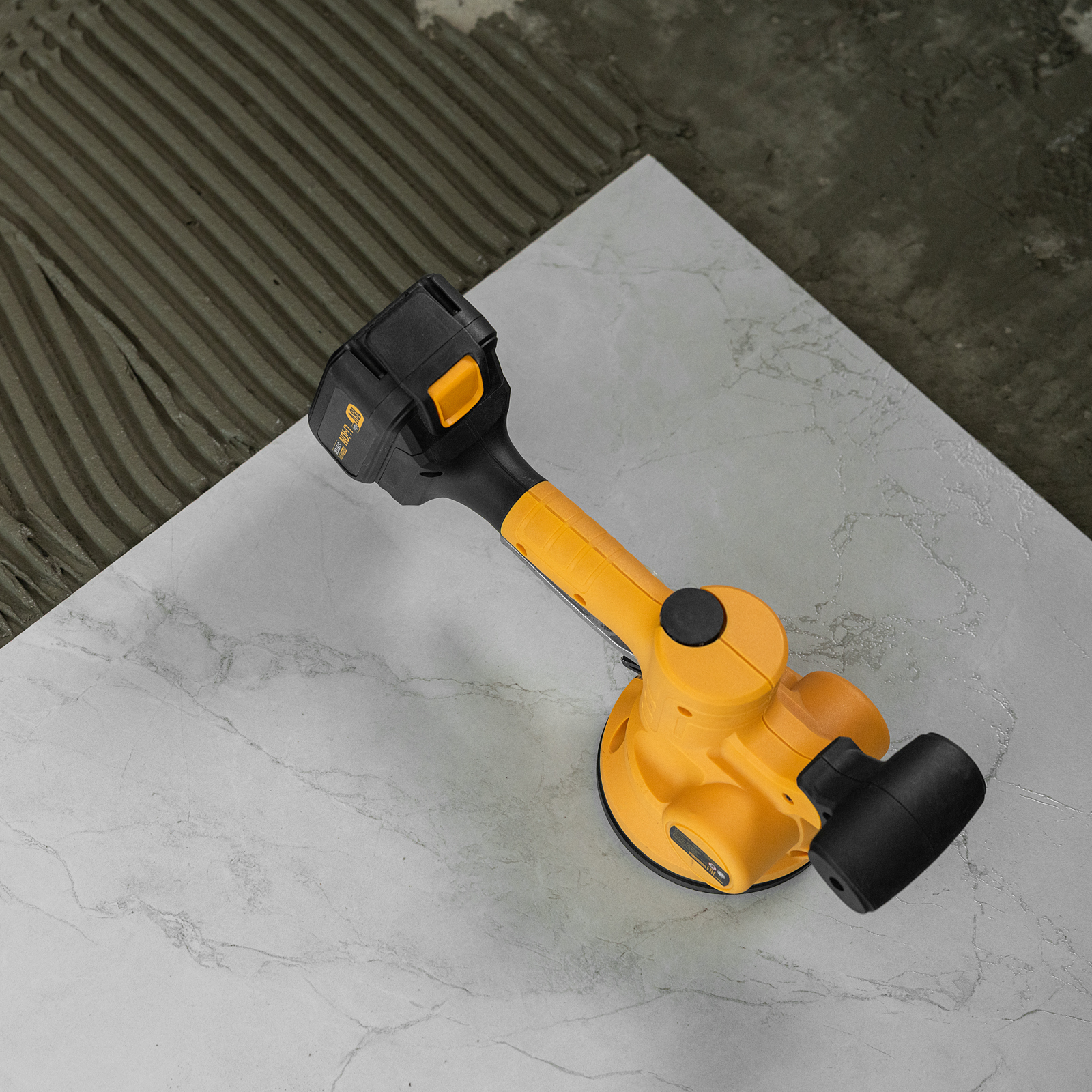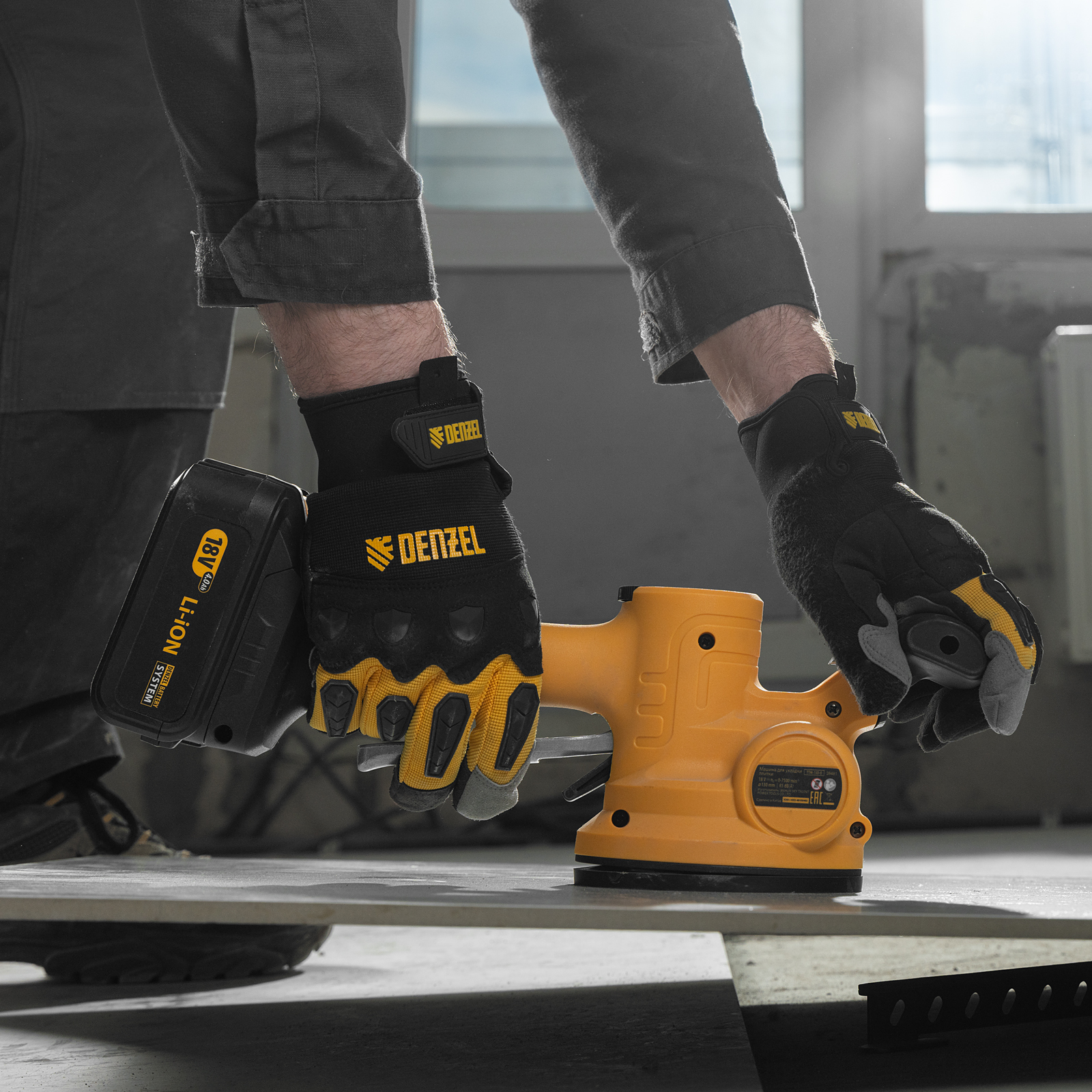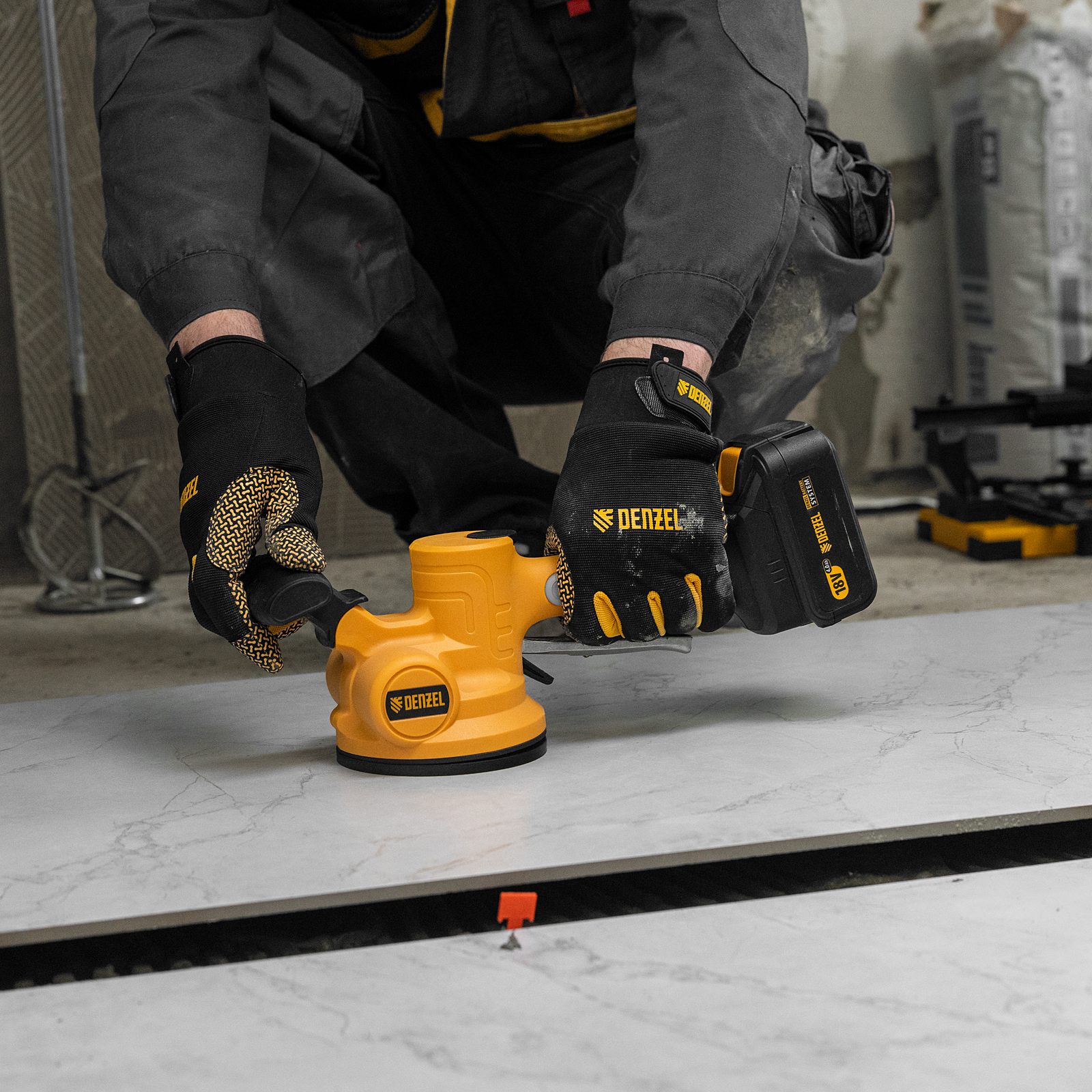 Машина для укладки плитки Denzel TTM-130-0 28481 работает от аккумуляторной батареи Li-Ion емкостью 2 А/ч, с рабочим напряжением 18 В, и используется для проведения облицовочных работ. При помощи присоски диаметром 130 мм оказывает вибрационное воздействие на поверхность плитки со скоростью 500-12000 об/мин, что способствует равномерному распределению клея, а также препятствует образованию воздушных пузырьков и полостей под плиткой, позволяя избежать ее перекоса и повреждения.,Машина поставляется без АКБ и зарядного устройства, на нее можно установить универсальный аккумулятор, совместимый с любым инструментом единой платформы Denzel battery system 18V серии IB.