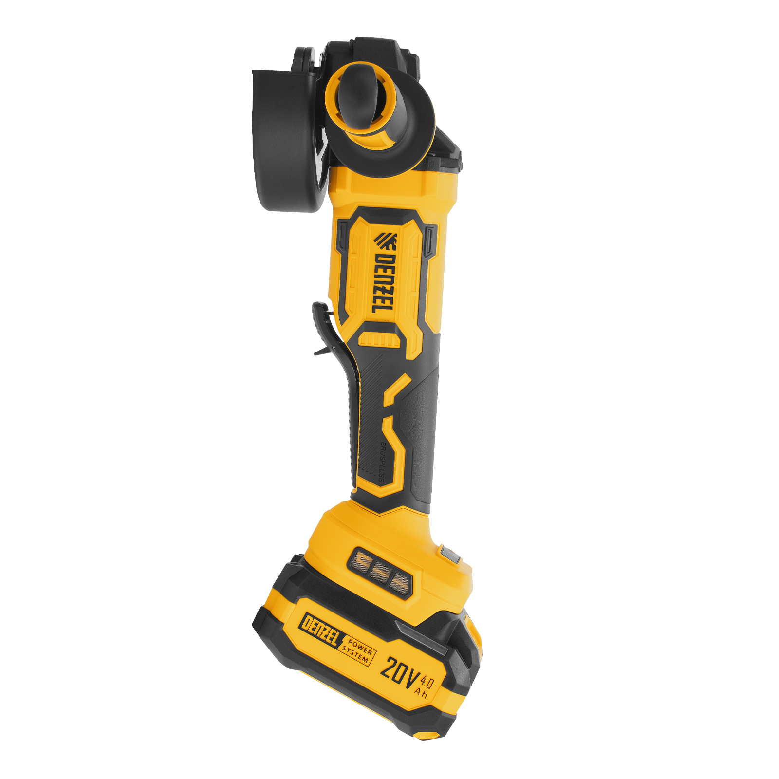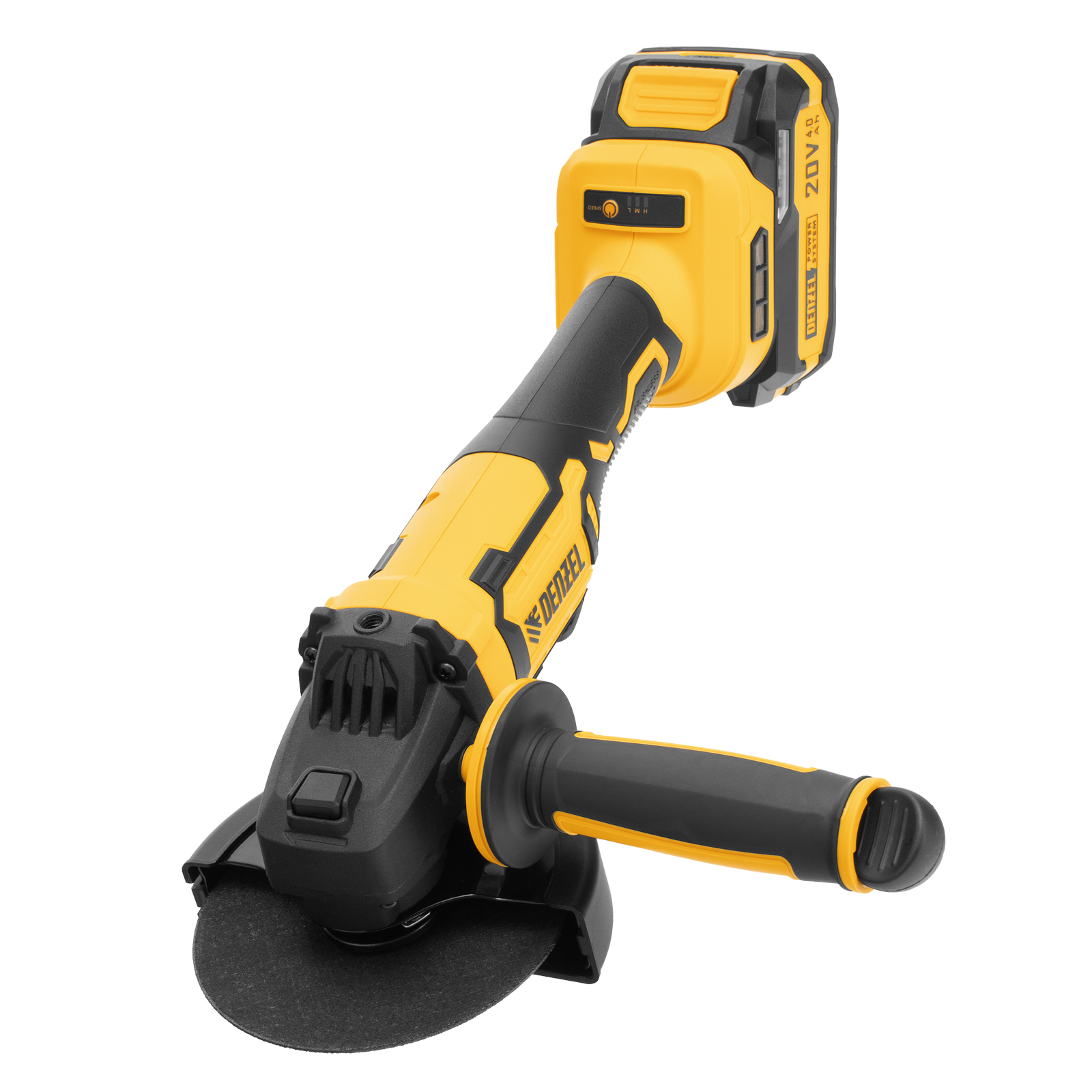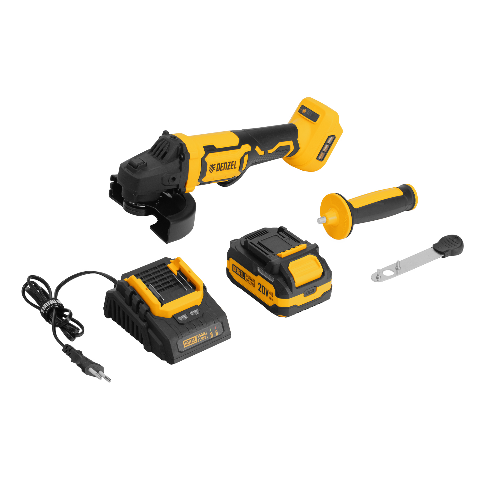 - Универсальность — аккумулятор Li-Ion емкостью 4 А·ч совместим со всеми инструментами единой платформы Denzel Power System 20V.