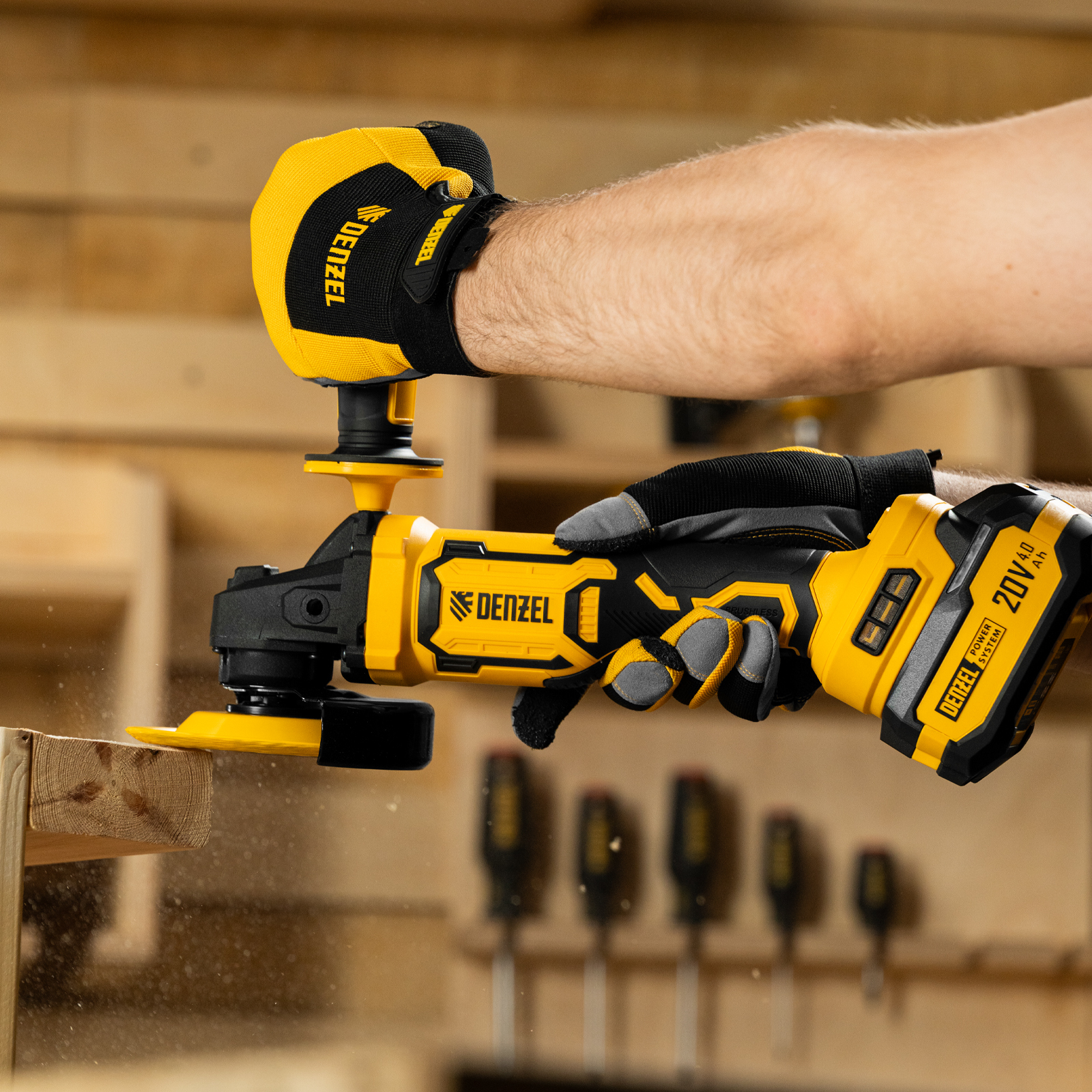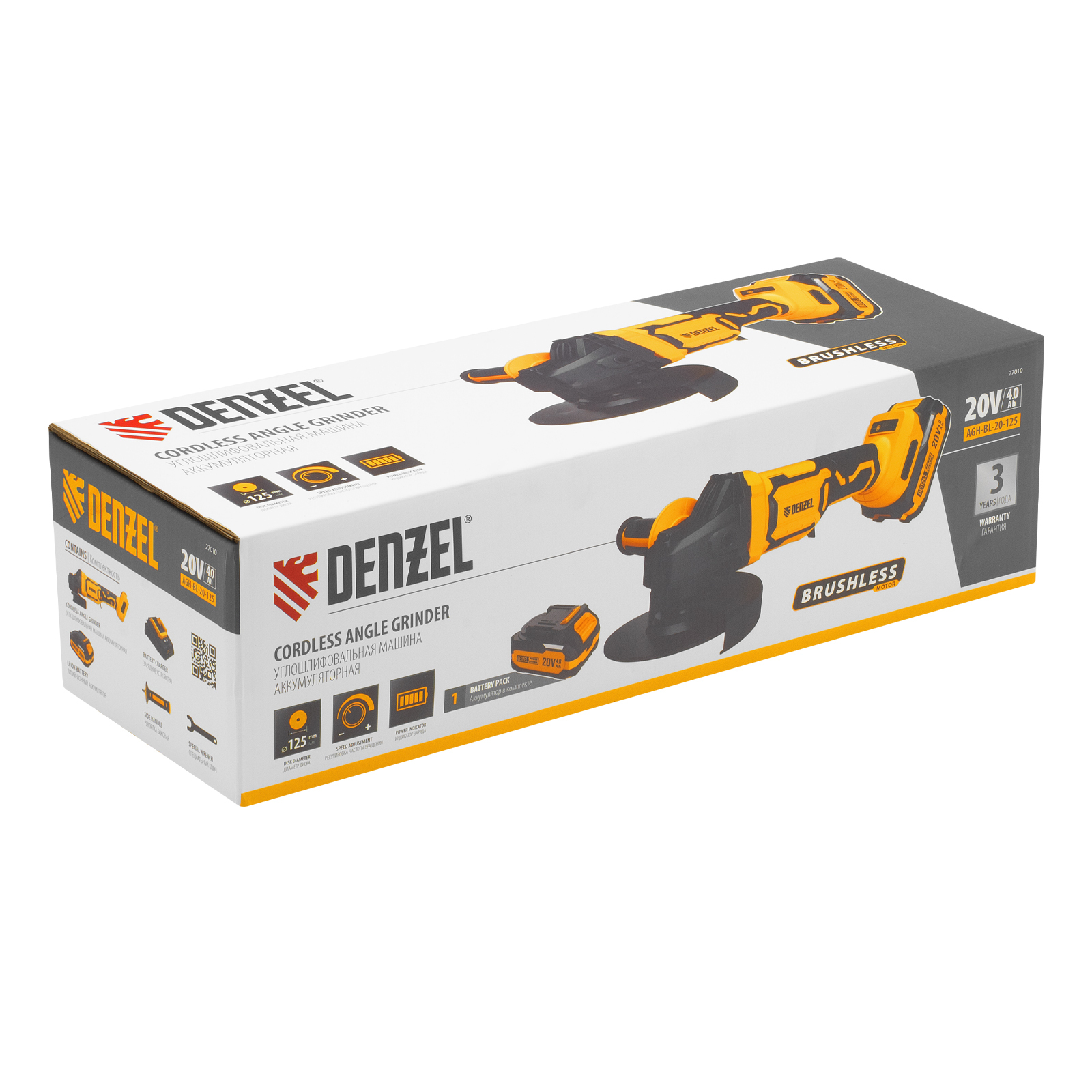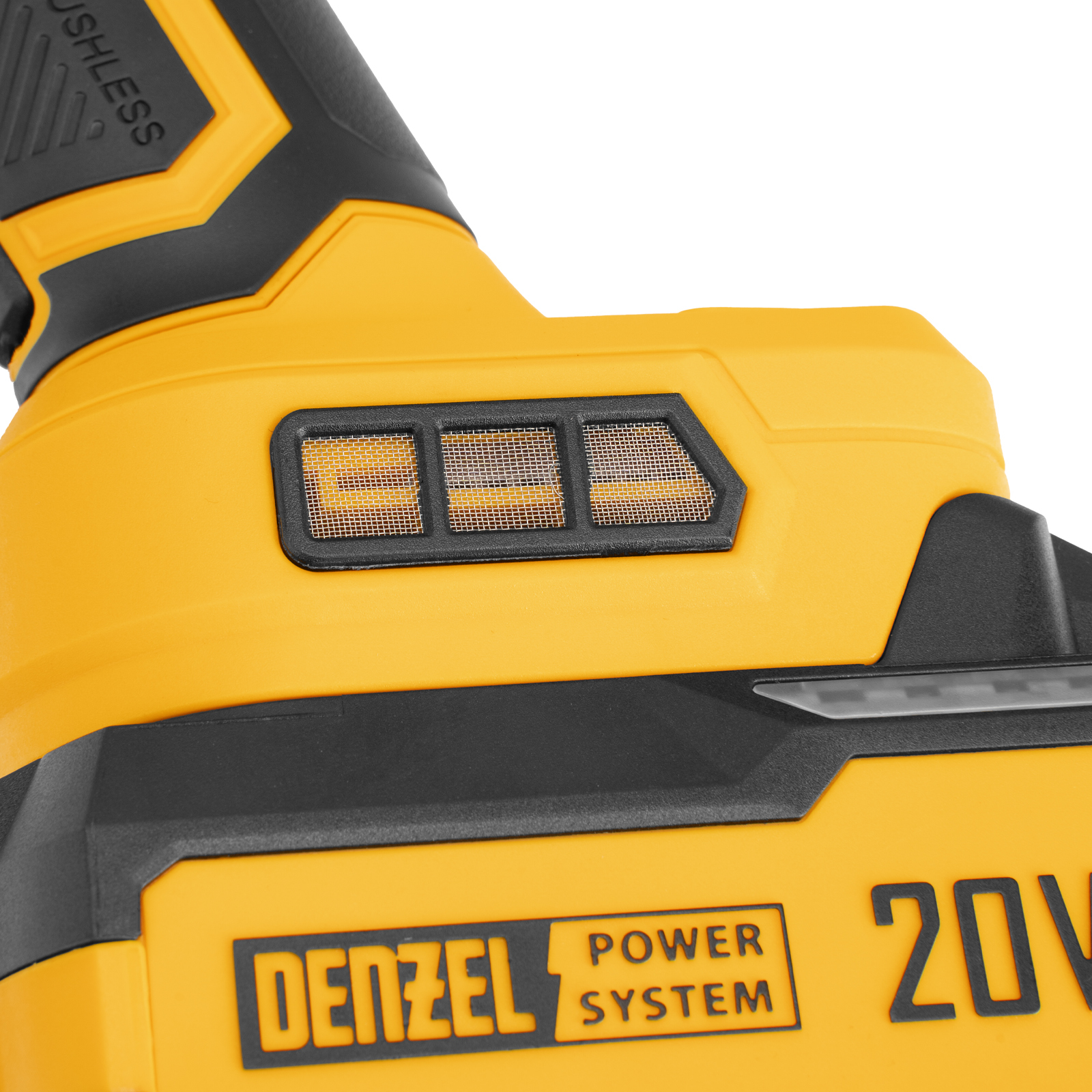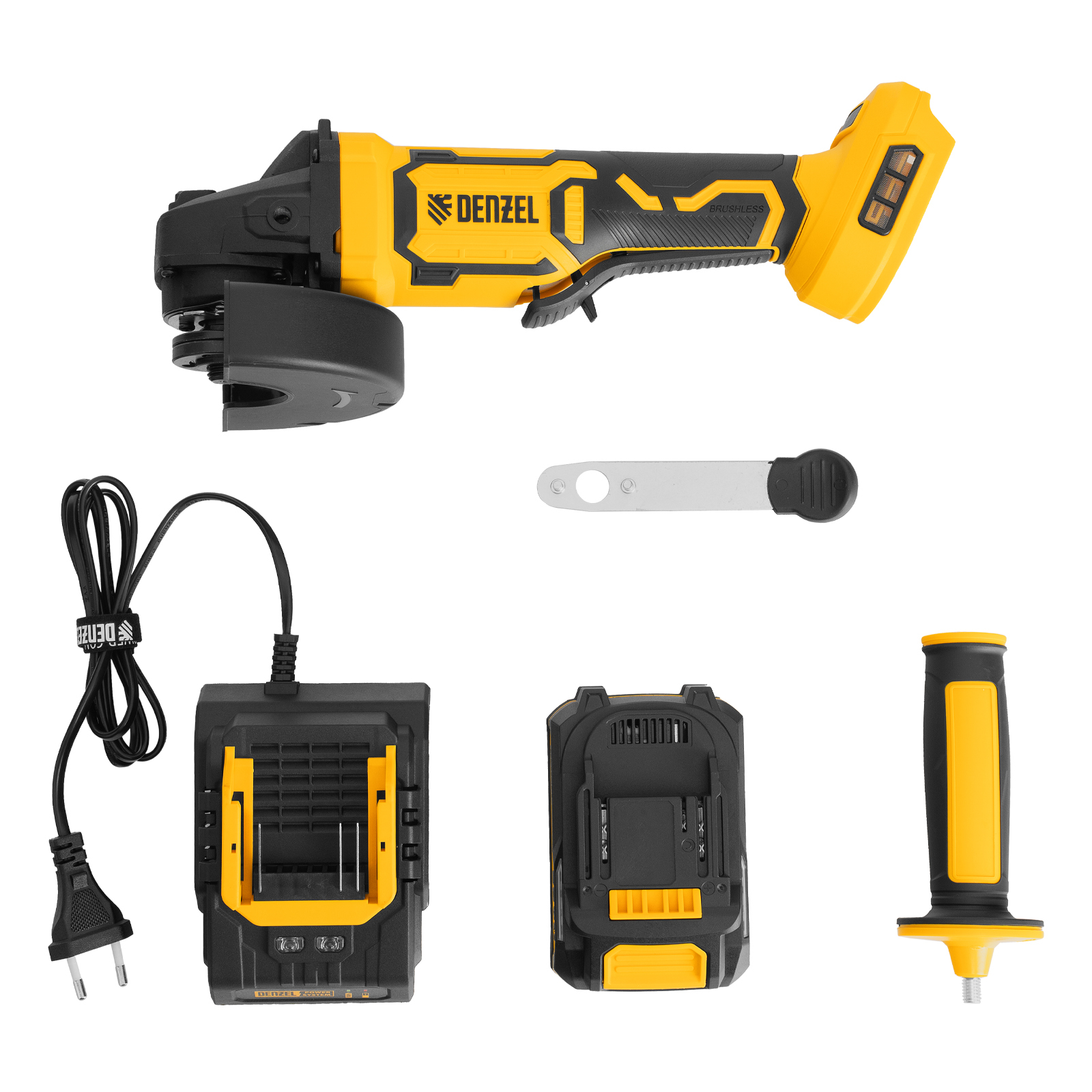 - Универсальность — аккумулятор Li-Ion емкостью 4 А·ч совместим со всеми инструментами единой платформы Denzel Power System 20V.