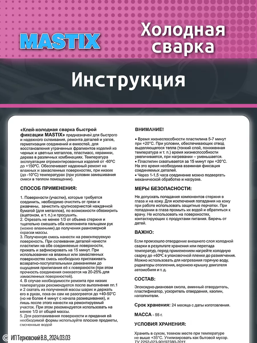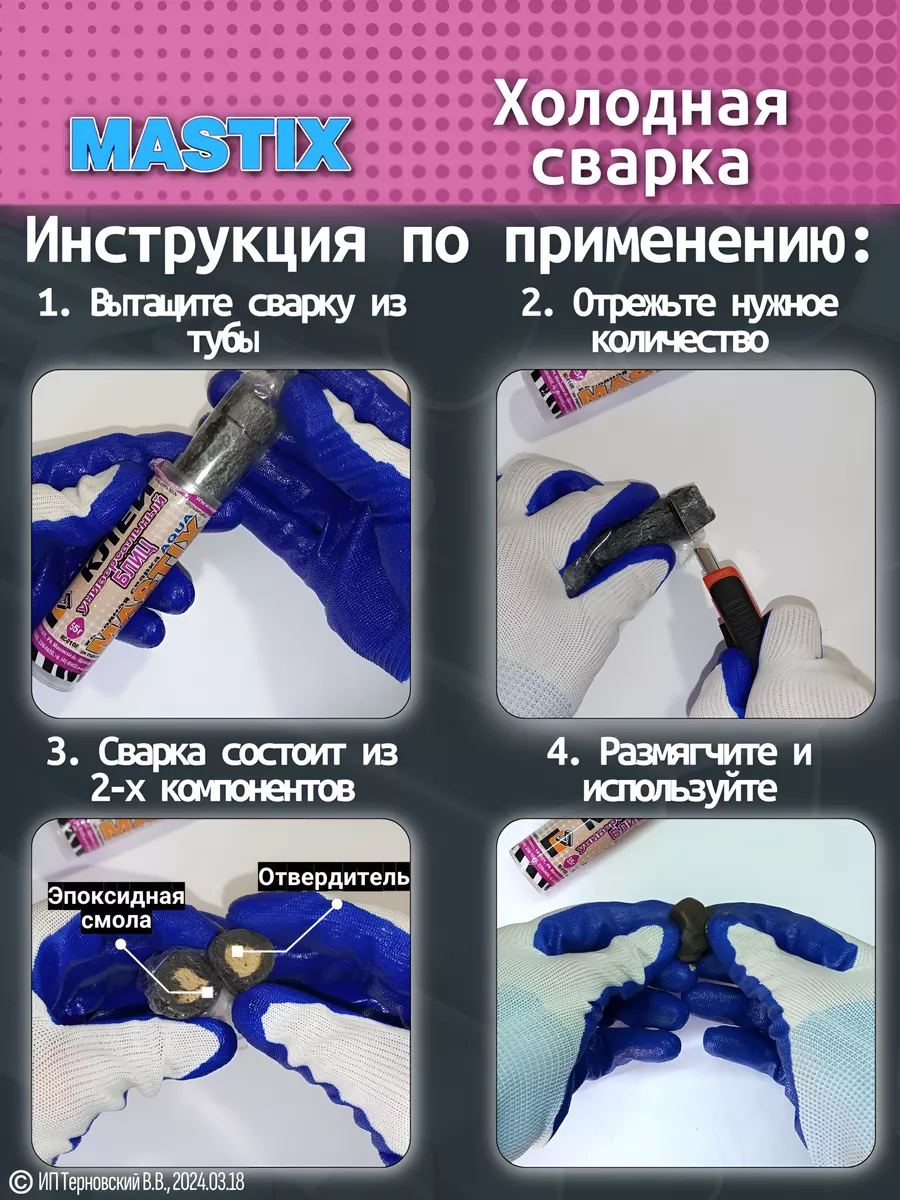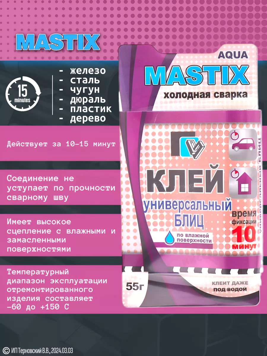 Холодная сварка БЛИЦ универсальная, предназначена для быстрого, надёжного ремонта и герметизации различных металлических соединений (железо, сталь, чугун, дюраль, алюминий, латуни и т.д.), различных пластмасс, керамики, а также дерева и деревянных изделий в различных комбинациях. Холодная сварка применяется при трещинах, разломах, а также восстановления отсутствующих фрагментов изделий.