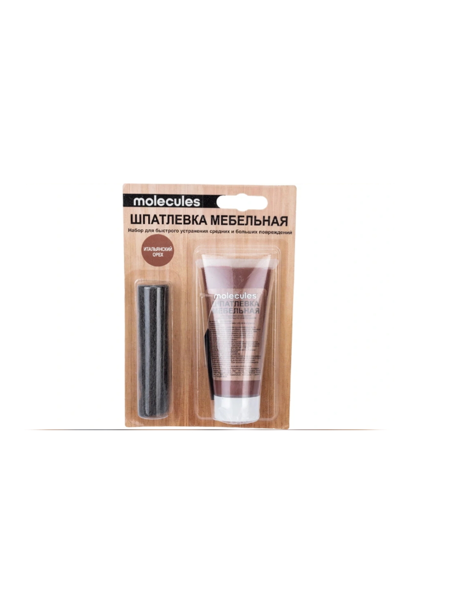 Мебельная шпатлевка Molecules итальянский орех KMLS757 предназначена для заполнения и выравнивания средних и больших сколов, отверстий, вмятин, в том числе восстановление углов и ребер на ламинате, паркете и различных поверхностях из ЛДСП и массива дерева, подверженных интенсивной эксплуатации. Образует прочное покрытие.