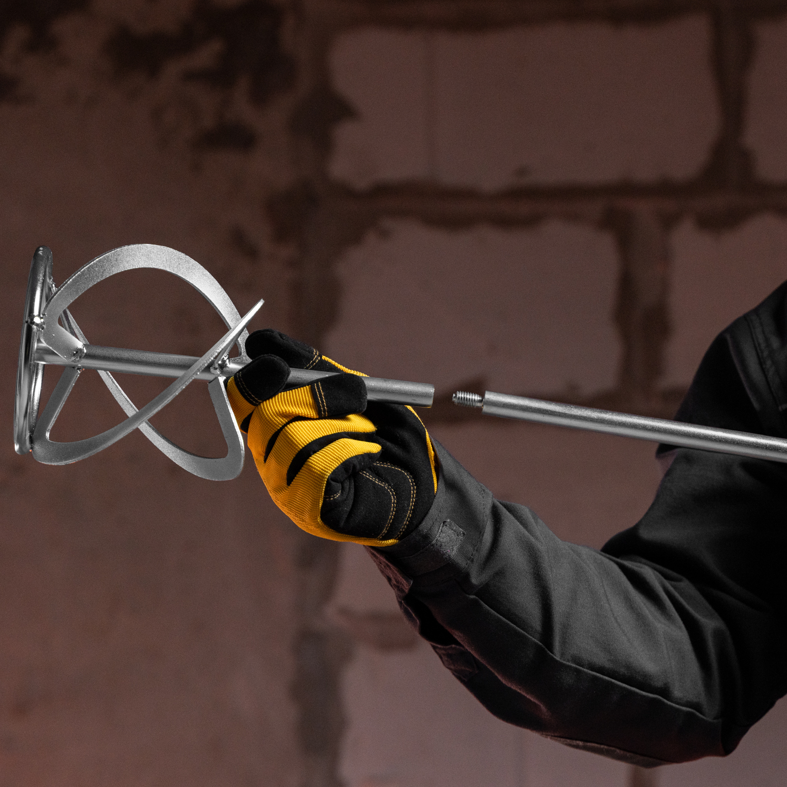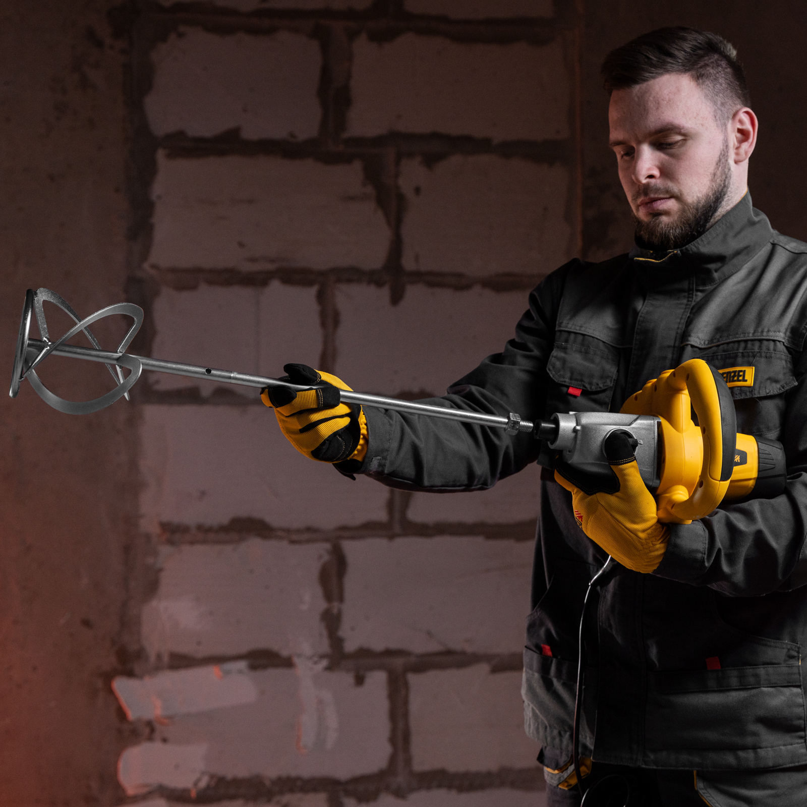 - Диаметр оснастки 120 мм — строительные компоненты смешиваются равномерно, двигатель не перегружается.