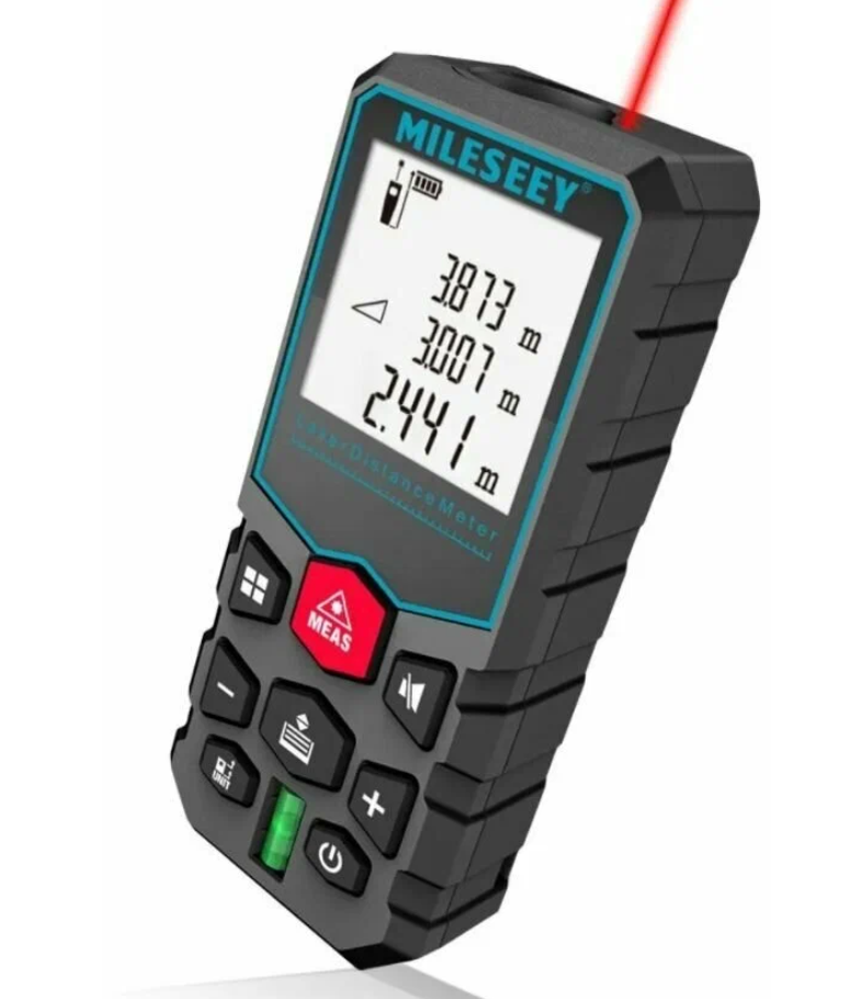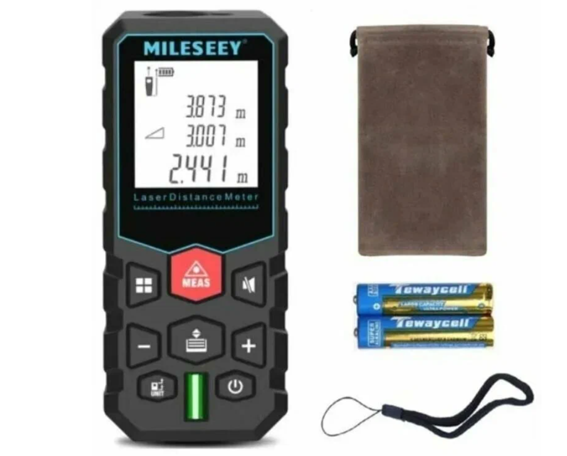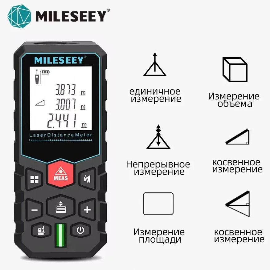 Лазерный дальномер MILESEEY X5 предлагает широкий спектр функций для измерения длины отрезка, площади по двум точкам, объема по трем точкам и высоты по теореме Пифагора по двум и трем точкам.