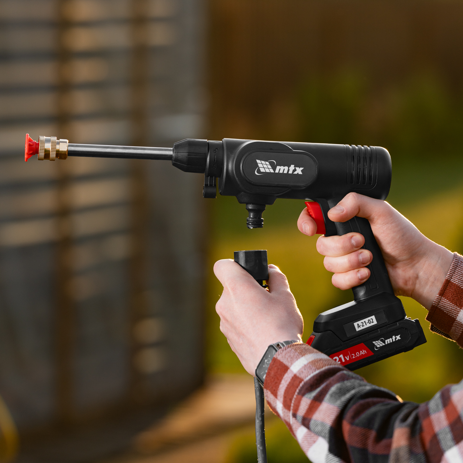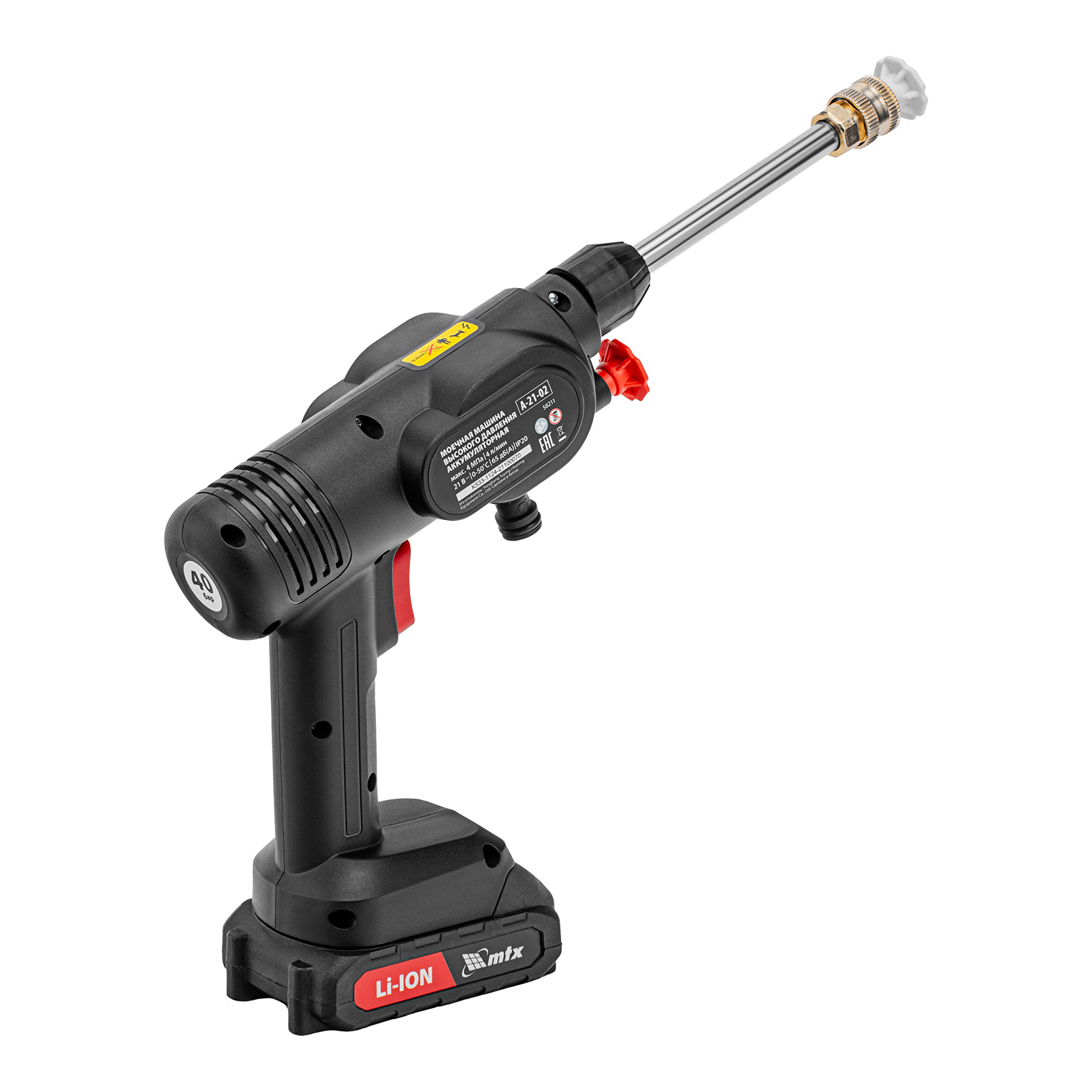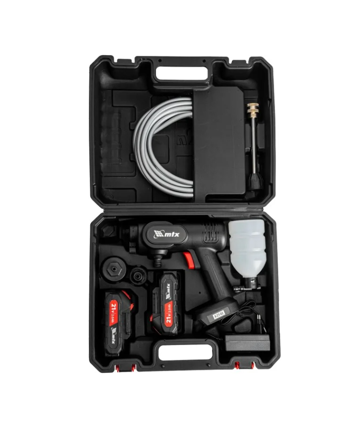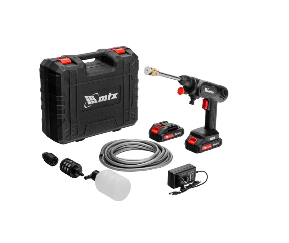 Аккумуляторная моечная машина высокого давления MTX A-21-02 58211 производительностью 4 л/мин работает от аккумулятора Li-Ion 21 В (в комплекте 2 шт.). Используется для мытья фасадов зданий, автомобилей, садовых инструментов и т.д. Оптимальна для бытового применения. Аккумуляторная батарея Li-Ion без эффекта памяти, емкостью 2 А·ч, обеспечивает длительную работу. Аккумулятор такого типа допускает подзарядку без потери емкости. Машина проста в использовании и не требует специального обслуживания. Максимальное давление — 40 бар.