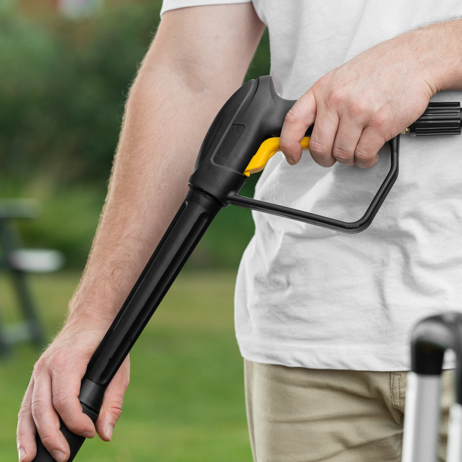 - Защита от непроизвольного запуска — для включения машины необходимо разблокировать рычаг моечного пистолета.