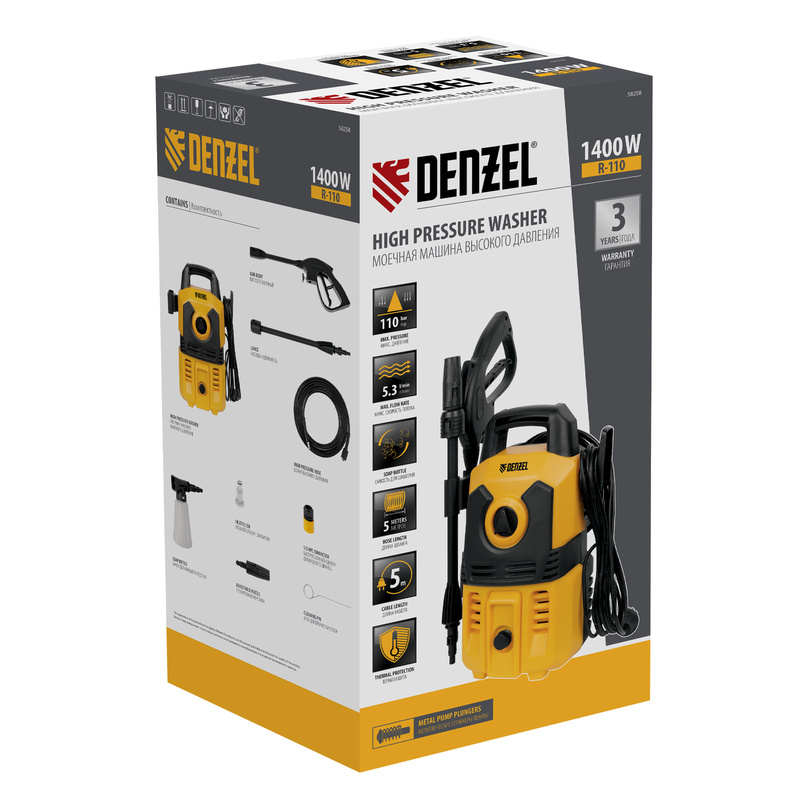 Моечная машина высокого давления Denzel R-110 58258 мощностью 1400 Вт предназначена для очищения различных поверхностей при помощи водяной струи под давлением. Максимальное давление составляет 110 бар, производительность — 320 л/ч. С помощью мойки можно быстро и эффективно очистить фасад дома, дорожки на дачном участке, кузов автомобиля, садовую мебель и инвентарь. Машина подключается к водопроводной сети, а в случае ее отсутствия может забирать воду из любого открытого резервуара, работая в режиме самовсасывания. Рекомендована для бытового применения.