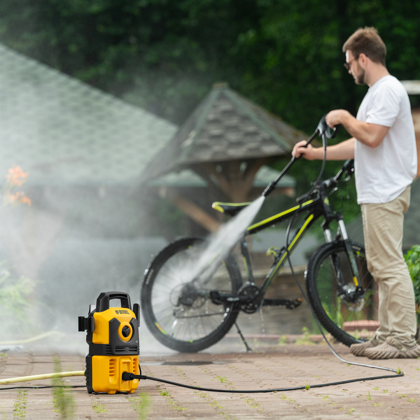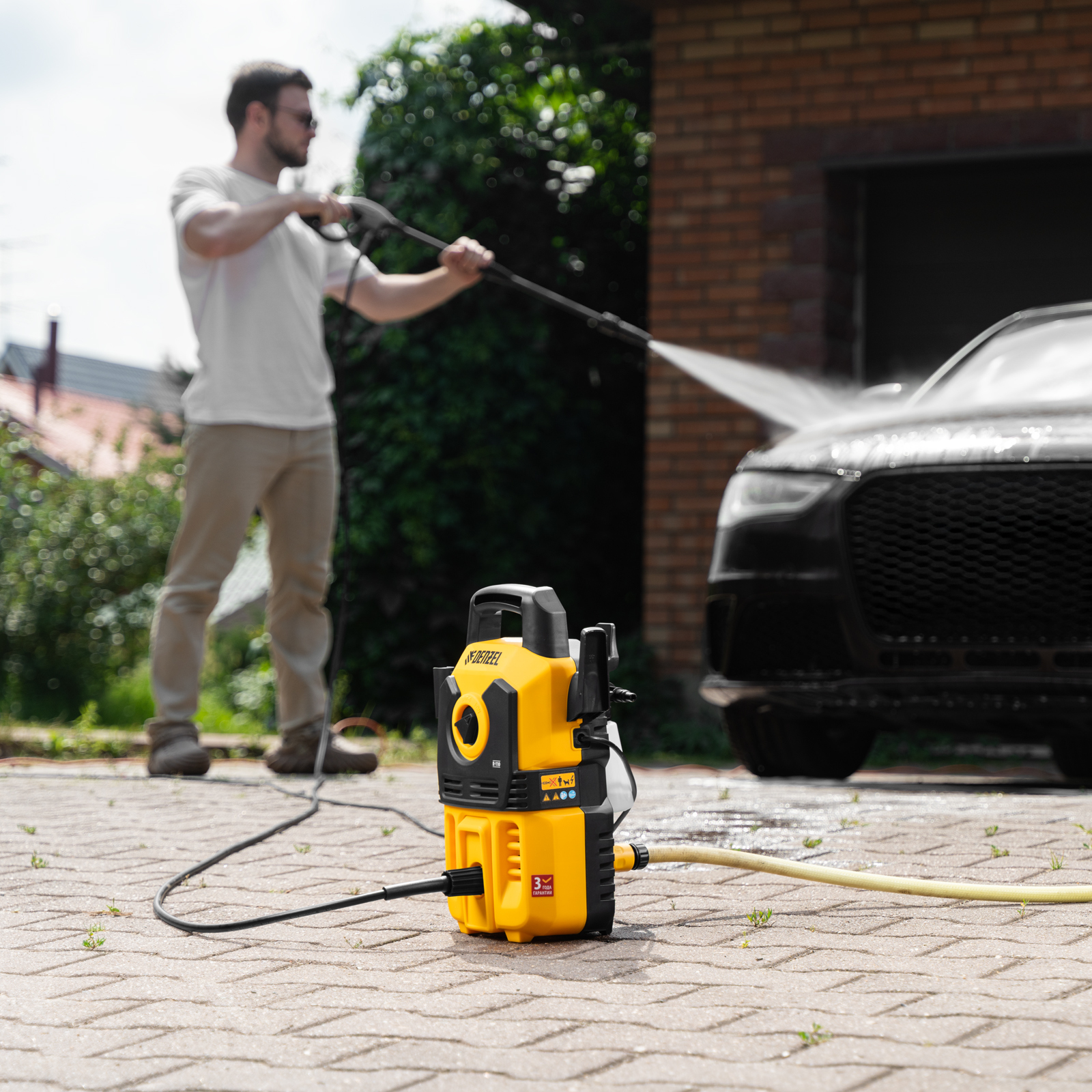 - Комфортное передвижение — длина кабеля и шланга высокого давления составляет 5 м.