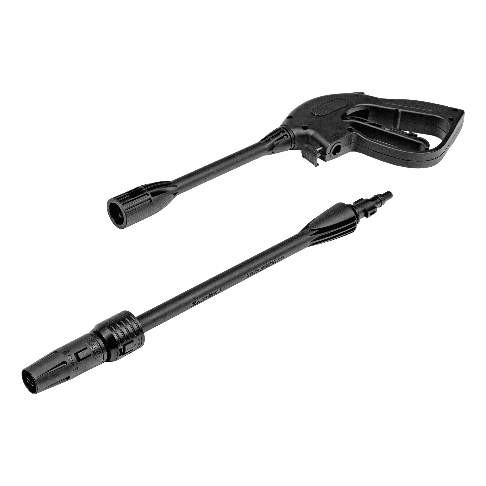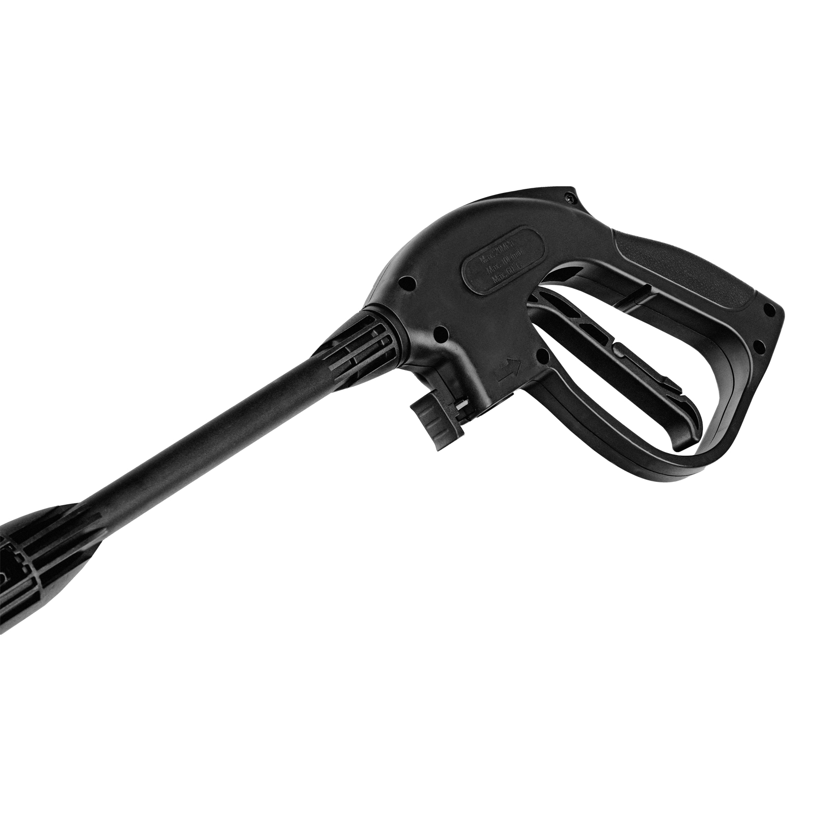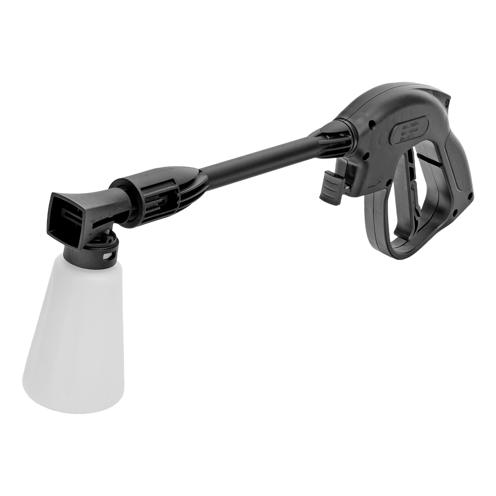 - Защита от случайного пуска — перед началом работы необходимо разблокировать рычаг моечного пистолета.