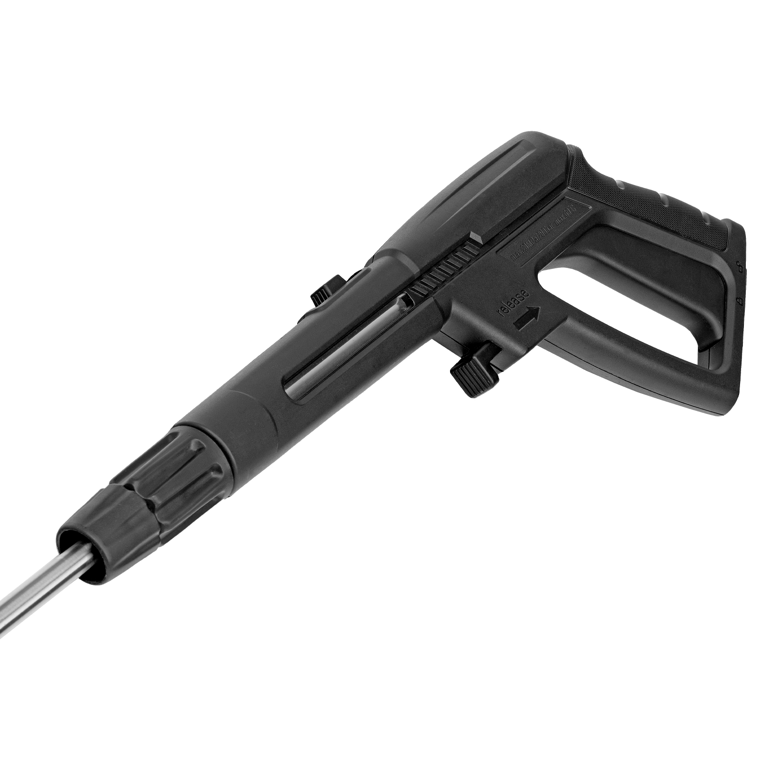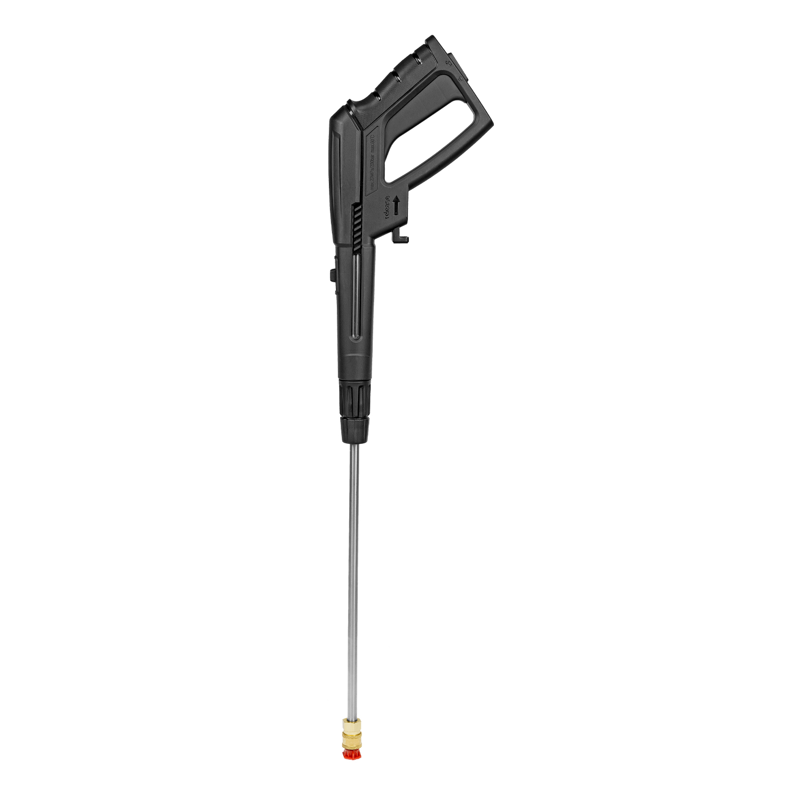 - Защита от случайного пуска — перед началом работы необходимо разблокировать рычаг моечного пистолета.