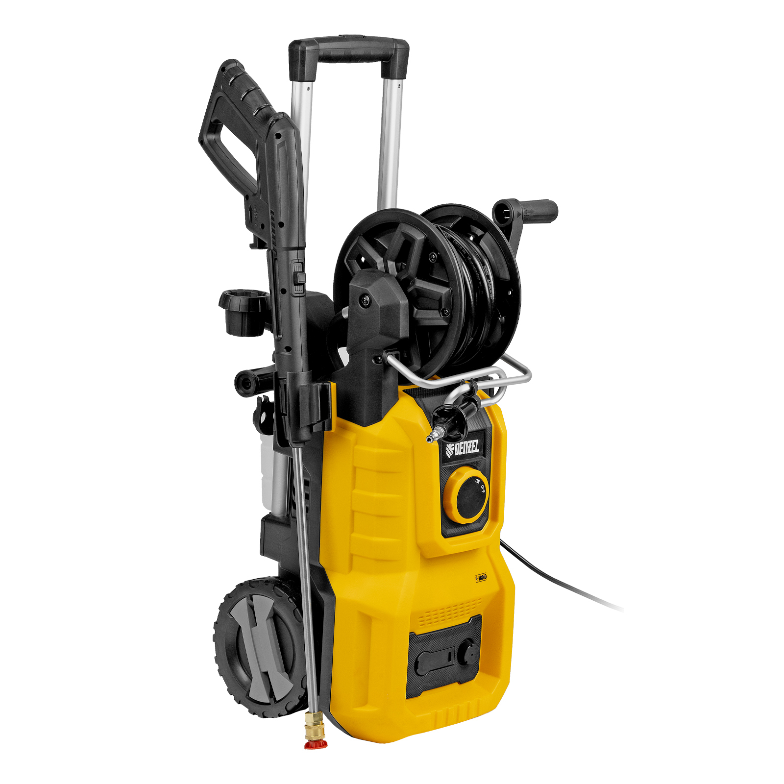- Удобное использование — функциональный барабан подключен к магистрали высокого давления, поэтому вы можете разматывать и убирать шланг на барабан, не отсоединяя его от мойки.