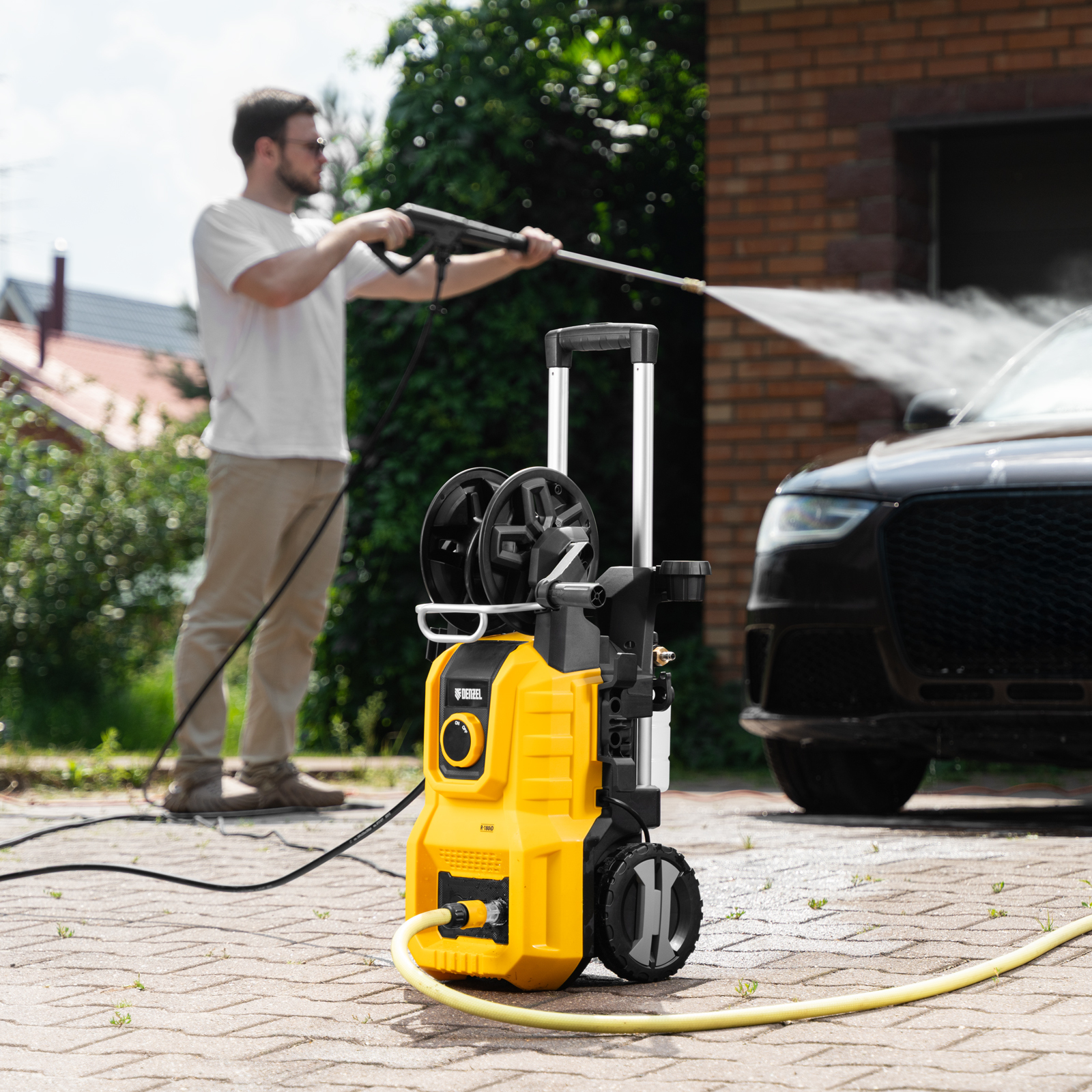 Моечная машина высокого давления Denzel R-180iD 58266 мощностью 2000 Вт, с барабаном и асинхронным двигателем, используется для мытья дорожек, тротуаров, фасадов зданий, автомобилей, окон, садовой мебели и инвентаря. Максимальное давление составляет 180 бар, производительность — 420 л/ч. Мойка подключается к водопроводной сети, а в случае ее отсутствия может забирать воду из любого открытого резервуара, работая в режиме самовсасывания. Надежная алюминиевая помпа со стальными плунжерами обеспечивает стабильное давление даже при длительном интенсивном использовании. Мойка высокого давления незаменима на дачном участке.