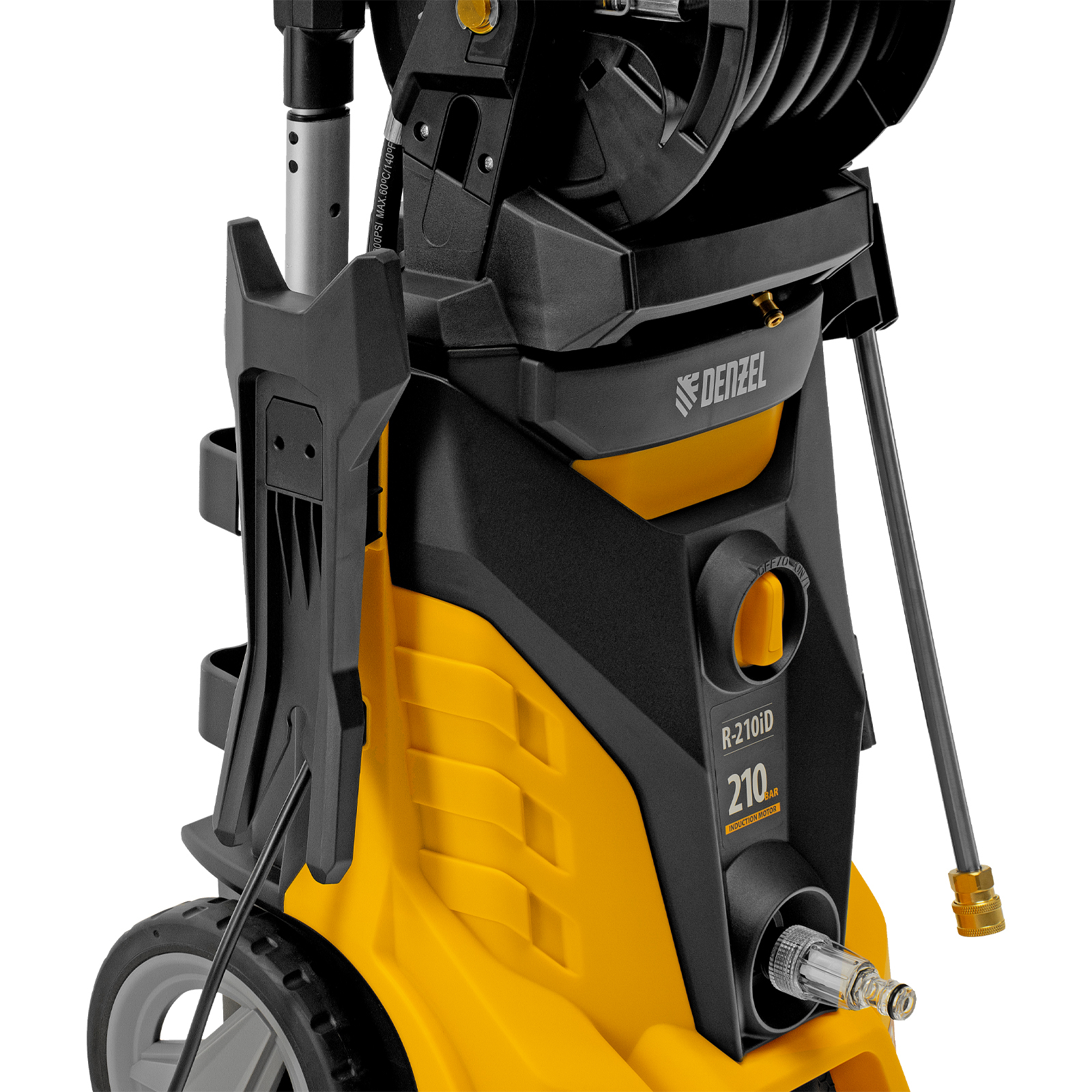 Моечная машина высокого давления Denzel R-210iD с асинхронным двигателем и барабаном для шланга оптимально подходит для очищения автомобилей, заборов, дорожек и садового инвентаря. Эффективно справляться с серьезными загрязнениями позволяют мощный мотор 2600 Вт и помпа с производительностью 8 л/мин и максимальным давлением 210 бар.,Отсутствие водопровода поблизости не станет проблемой. Мойка с насосом может производить забор воды из любых емкостей благодаря функции самовсасывания, при этом теряя не более 5% давления. Алюминиевая помпа со стальными плунжерами отличается высокой точностью подгонки деталей, что обеспечивает надежность и стабильное давление на выходе.
