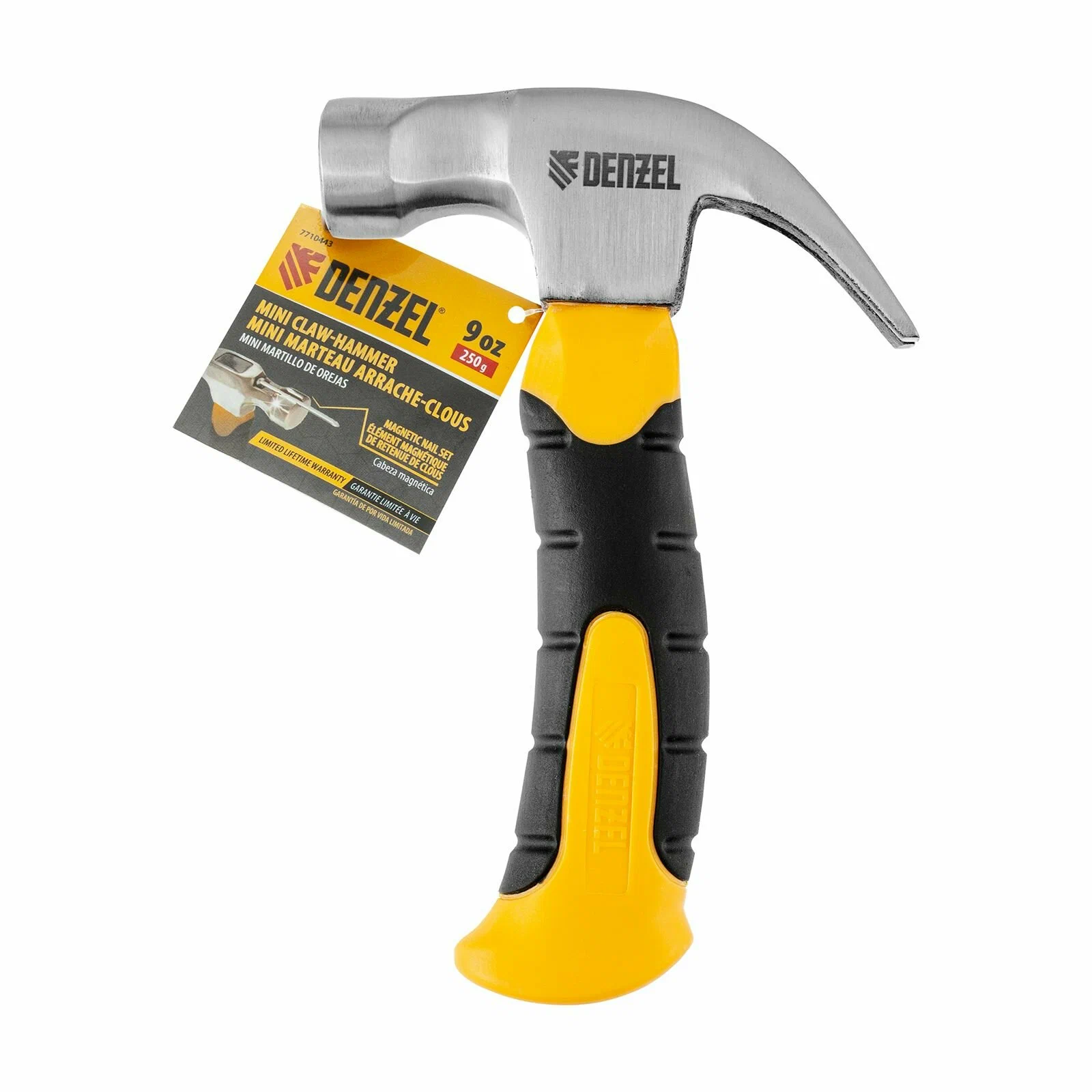 Наименование: Молоток-гвоздодер мини, боек с магнитом, фибергласовая двухкомпонентная рукоятка, 9oz, 250г// Denzel