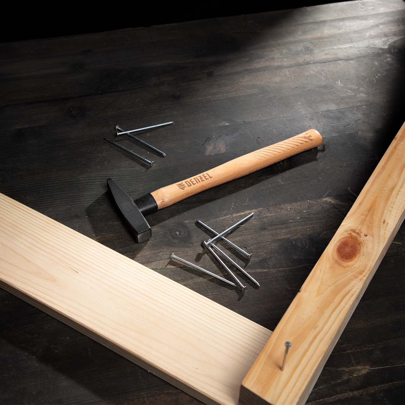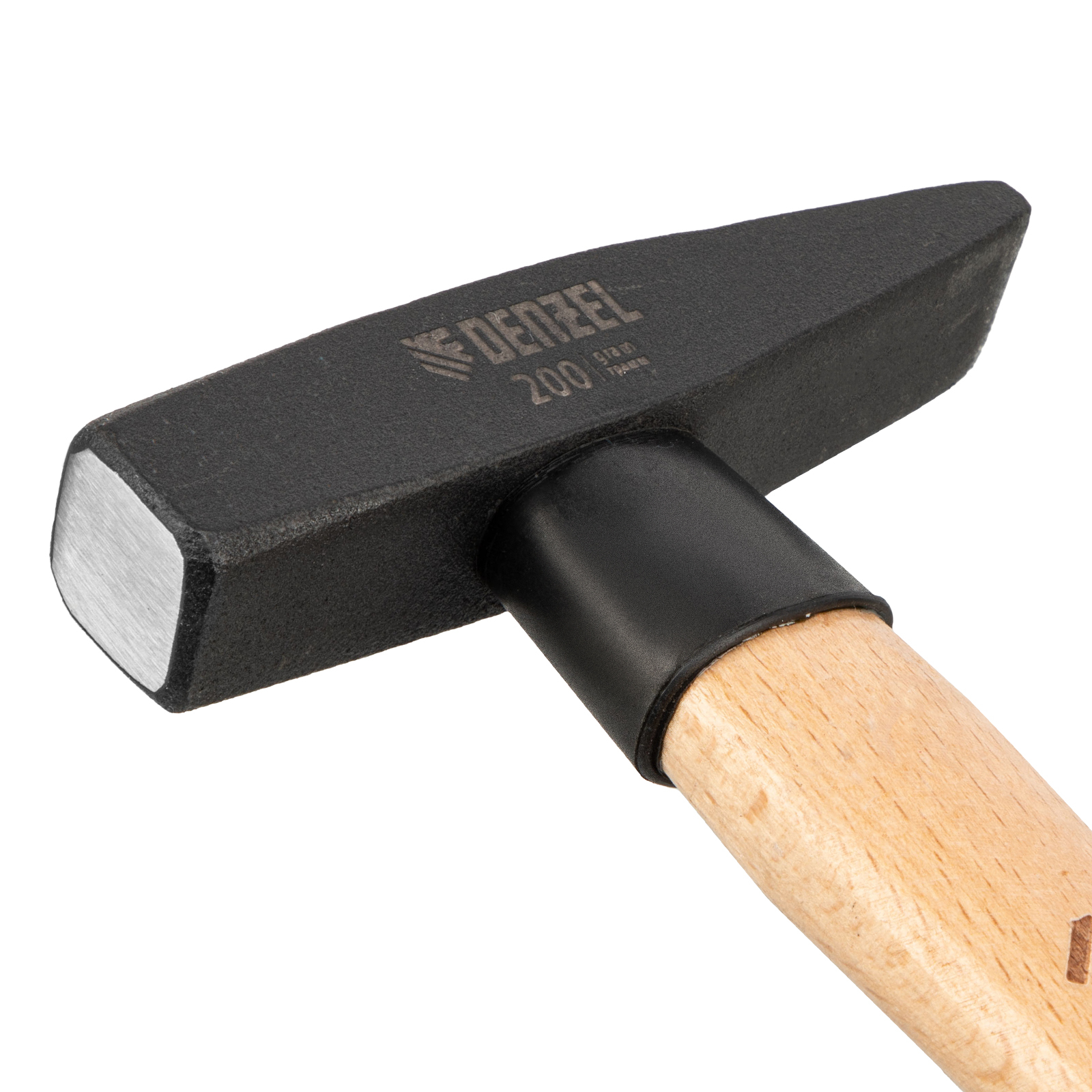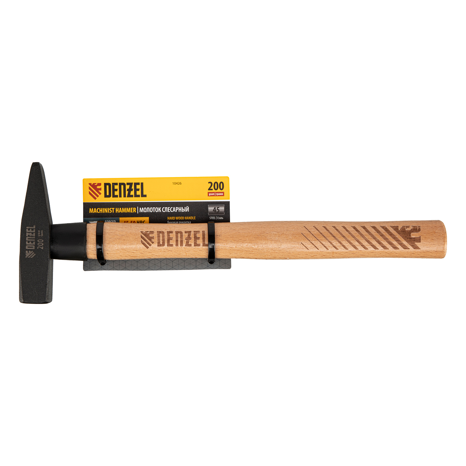 Слесарный молоток Denzel 10426 с квадратным кованым бойком весом 200 г предназначен для забивания гвоздей и другого крепежа и для работы с металлическими заготовками. Инструмент применяется во время слесарных или столярных работ в быту, также будет полезен профессионалам.