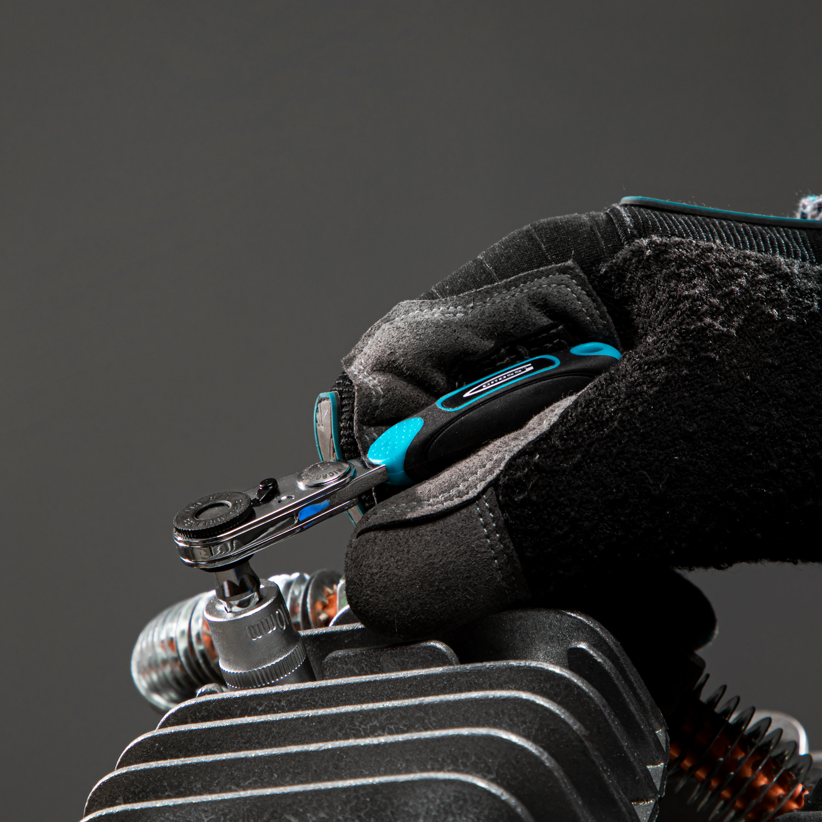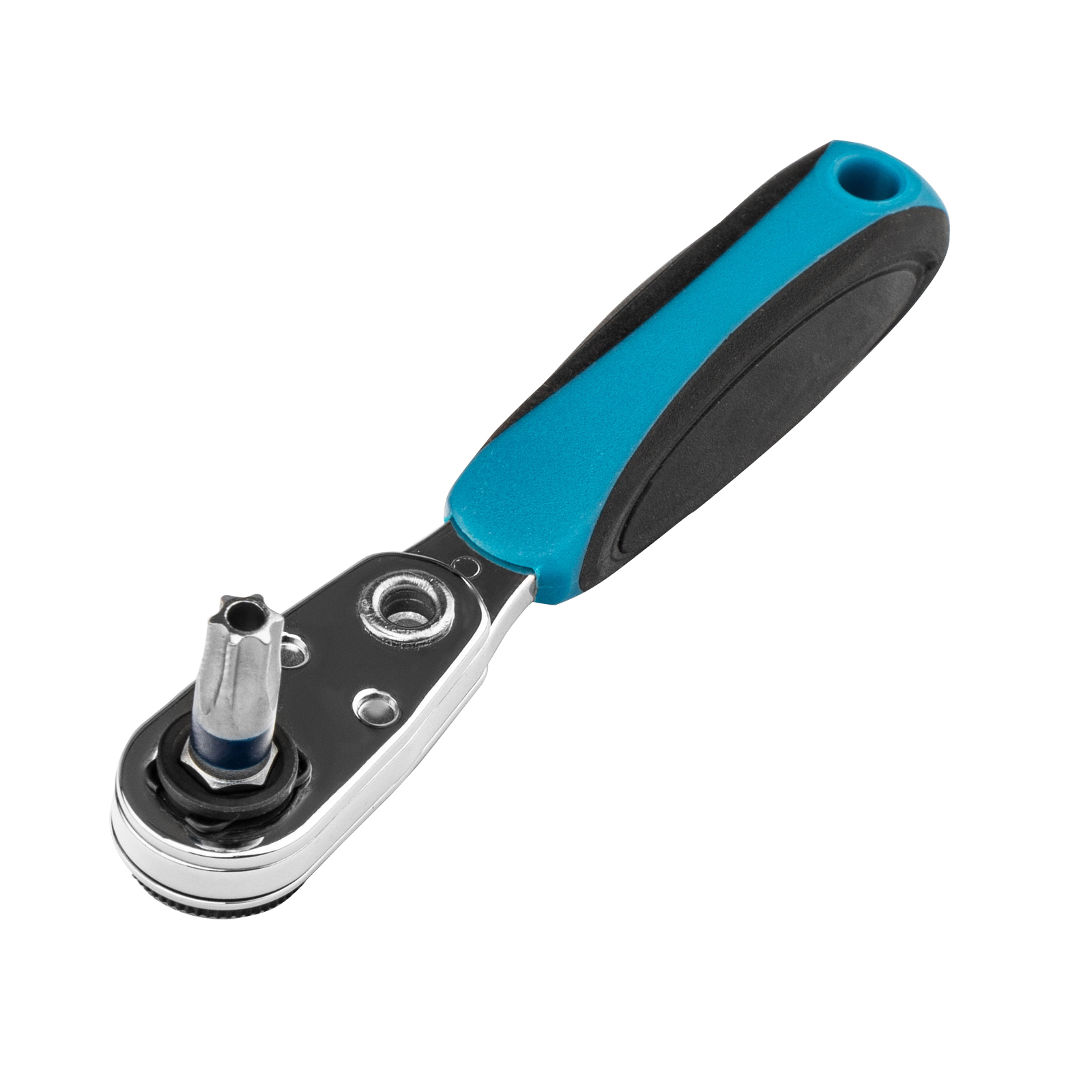 - Комфортная работа — трещотка с 52 зубьями обеспечивает плавное вращение крепежа, а прорезиненная рукоятка не выскальзывает из ладони.