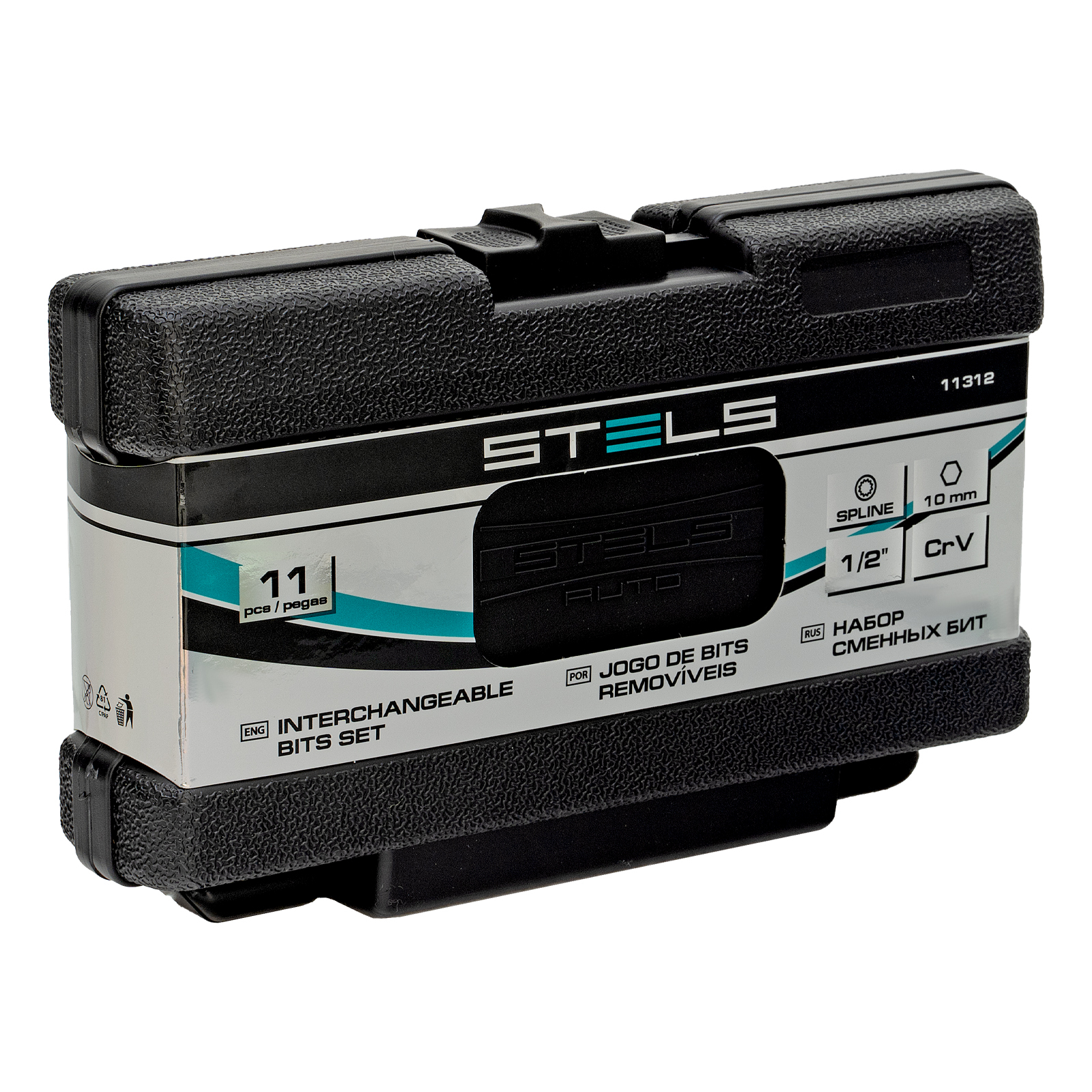 Набор Stels 11312 включает 11 предметов: 10 бит SPLINE из стали CrV, с шестигранным хвостовиком 1/2 дюйма, и переходник. Биты со шлицами в виде 12-лучевых «звезд» используются для монтажа и демонтажа резьбовых соединений с головками SPLINE М5, М6, М8, М10 и М12. Набор будет полезен в автомобильном производстве, на станции техобслуживания, в гараже для выполнения работ, требующих максимального усилия затяжки.