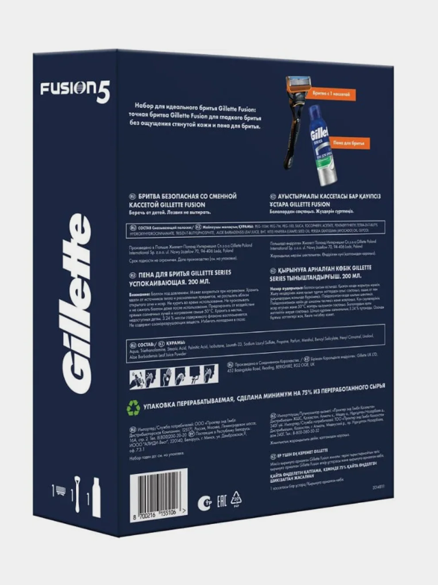 Товар продается по уценке в связи с истекающим сроком годности до 01.03 (Первого Марта) 2026 года. Набор Gillette FUSION Бритва с одной кассетой и Пена для бритья Успокаивающая 200 мл