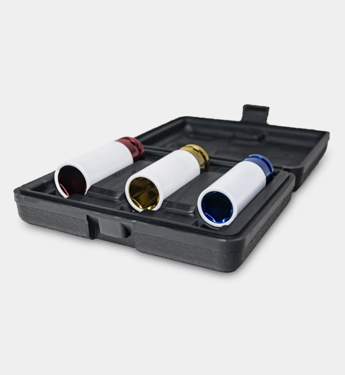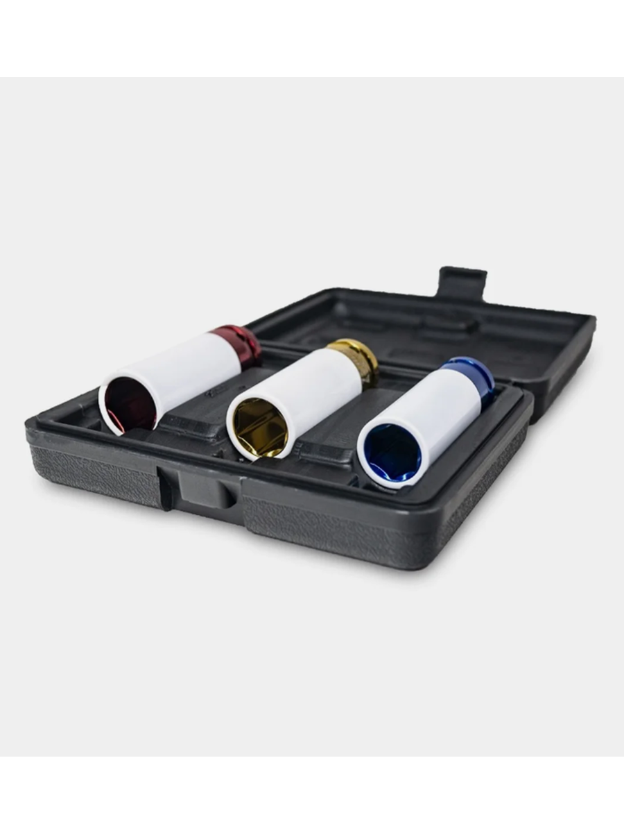 Предназначены для монтажа/демонтажа резьбового крепежа легкосплавных колесных дисков. Прочный пластик на головке защищает полировку диска от повреждений. Покрытие: цветное хромированное.