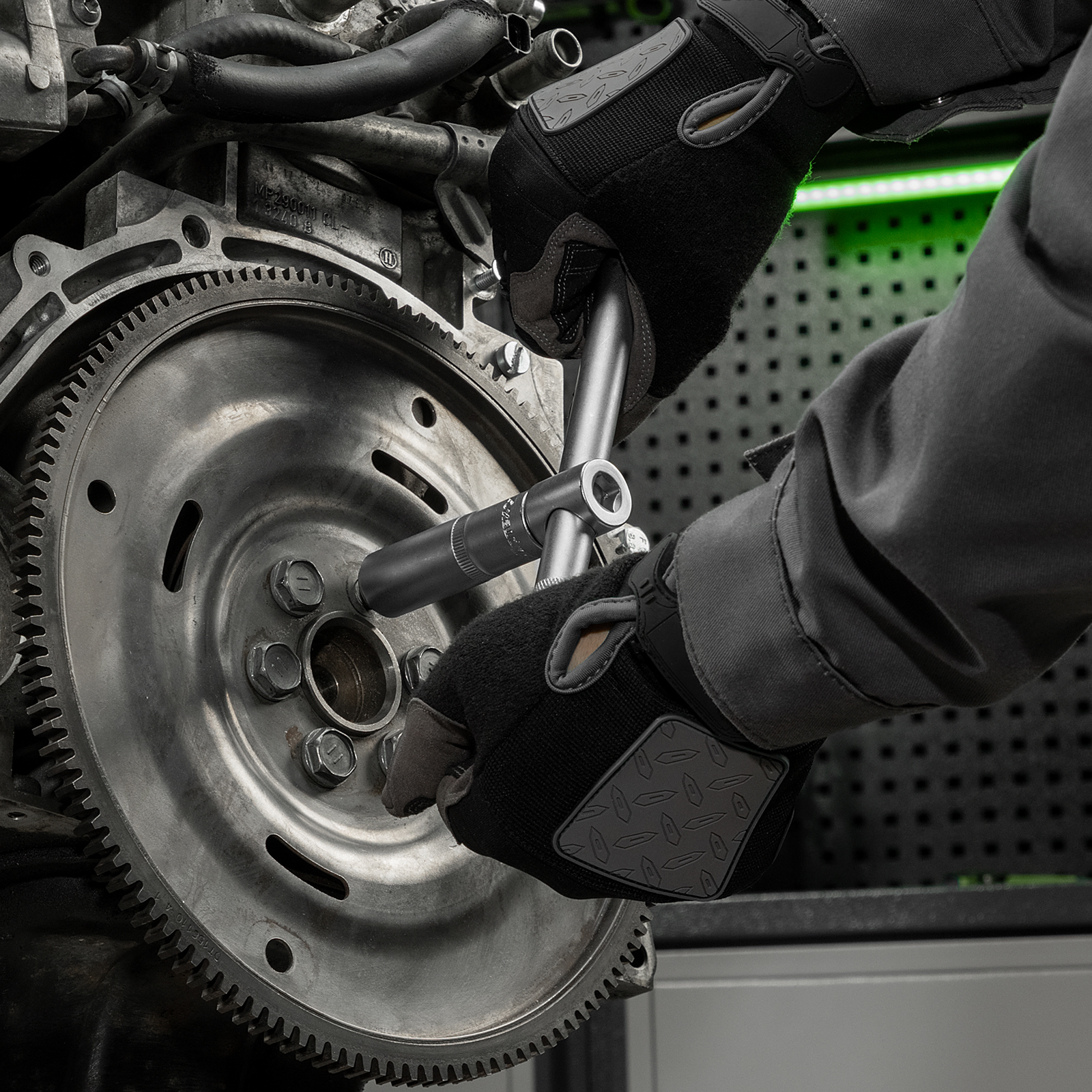 - Прочная фиксация — шариковый замок на трещотках, воротках, шарнирах и удлинителях надежно удерживает торцевые головки.