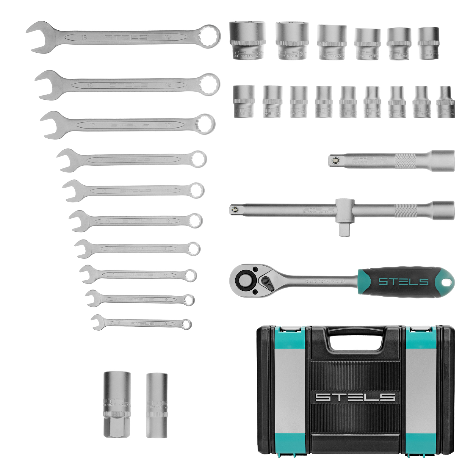- Устойчивость к повышенным нагрузкам — элементы набора изготовлены из термически обработанной хромованадиевой стали.