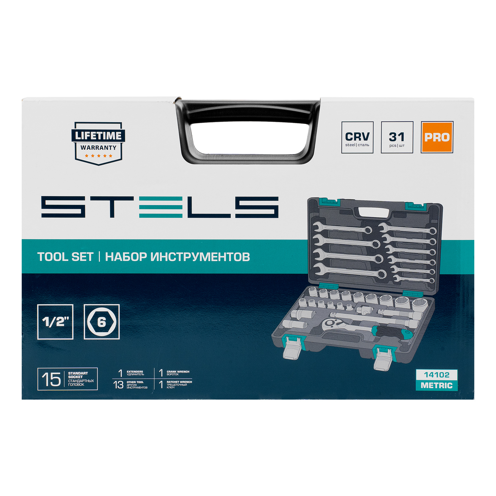 Набор инструментов Stels 14102 с присоединительным квадратом 1/2", из стали CrV-группы, упакован в пластиковый кейс и состоит из 31 предмета для работы с гайками, винтами и другим резьбовым крепежом. В комплект входит ключ-трещотка с шагом 5° и удлинители, облегчающие работу в труднодоступных местах. Набор будет полезен в гараже или в поездке, а также пригодится для проведения мелкого ремонта дома или на даче.