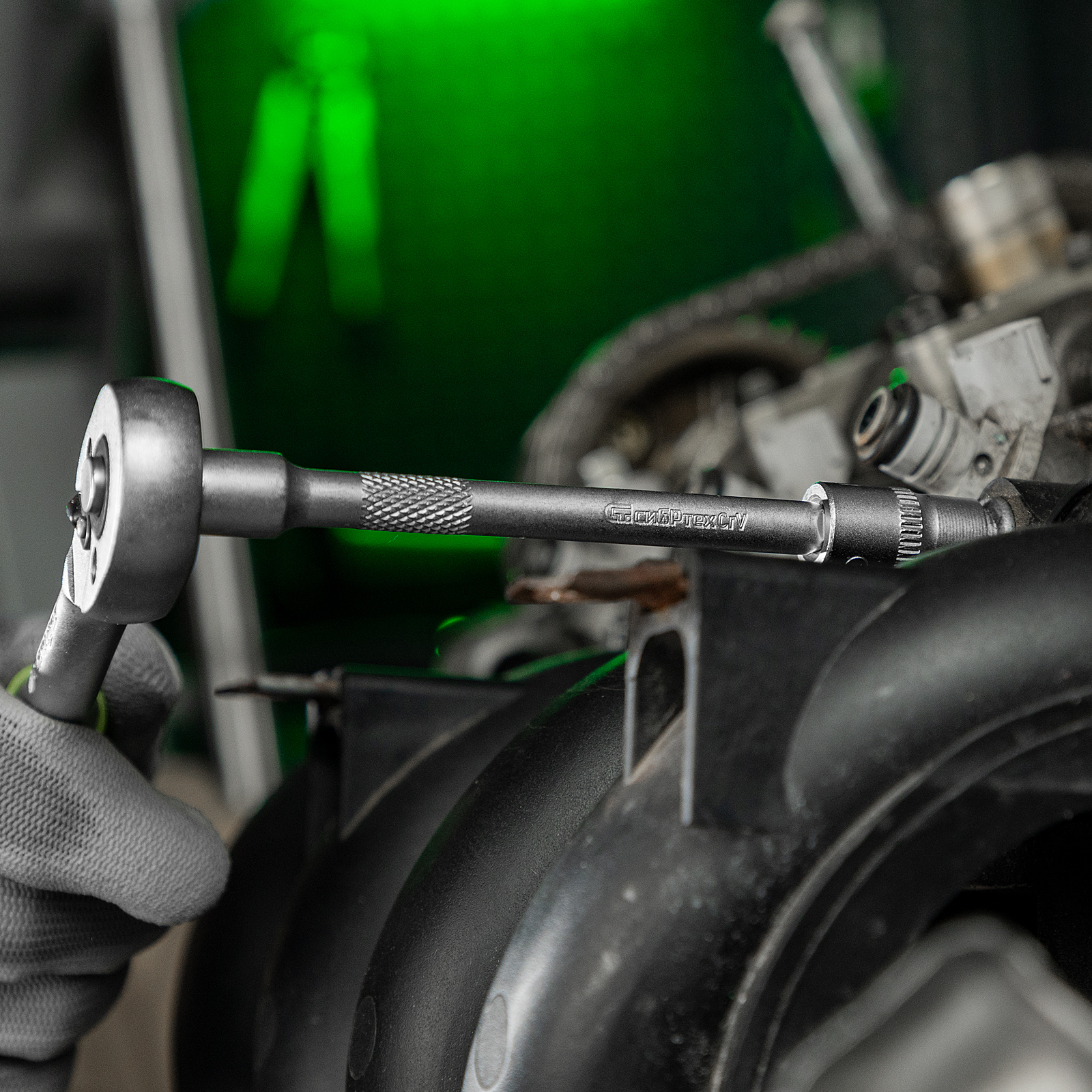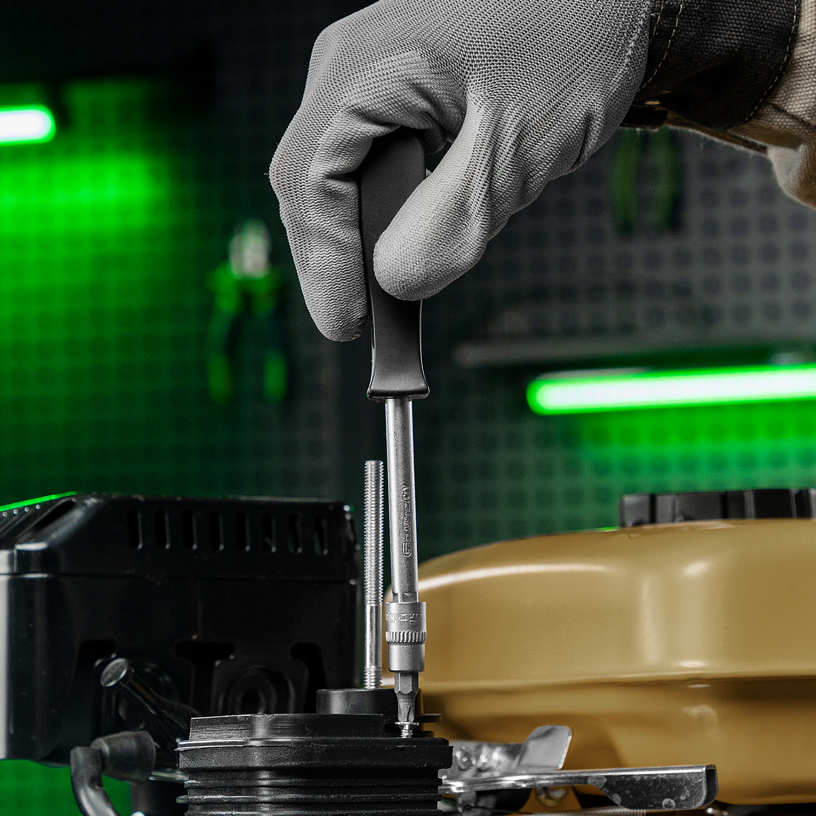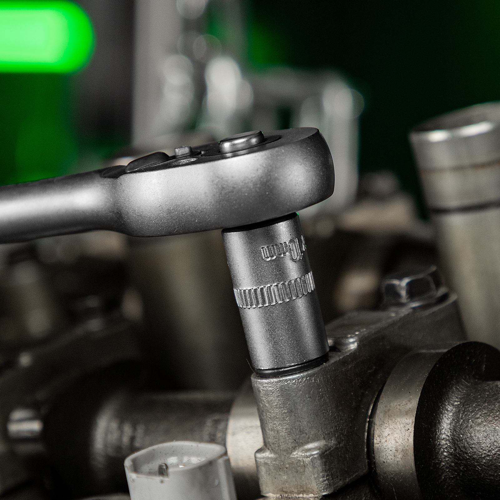 - Комфортная и эффективная работа — ключи-трещотки с 45 зубьями оснащены механизмом быстрого сброса, переключателем реверса с металлическим флажком и двухкомпонентной рукояткой.