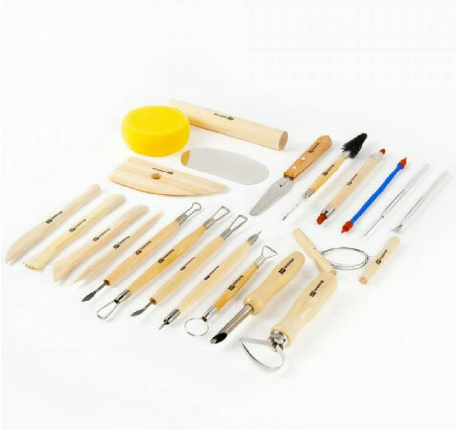 В набор входит 42 инструмента для лепки, самых разнообразных по форме и размеру, из дерева и металла. Инструменты подойдут для декорирования, моделирования и лепки из всевозможных материалов. С их помощью можно добиться точности в работе до мельчайших деталей, которую не добьешься руками. Набор включает в себя:1. Стеки деревянные с наконечниками из нержавеющей стали: ножи и лезвия фигурные, дотсы, петли, 22 шт. Для создания насечек и срезания ненужной части материала.2. Стеки деревянные, 4 шт. Для отрезания, создания узоров и отверстий в материале. 3. Ножи и пилы из нержавеющей стали, 6 шт.4. Стек-ручка деревянная с силиконовыми наконечниками, 1 шт.5. Стек пластиковый с силиконовыми наконечниками, 1 шт.6. Кисть двусторонняя, 1 шт.7. Кисть металлическая, 1 шт.8. Игла модельная, 1 шт.9. Шпатель деревянный, 1 шт.10. Шпатель из нержавеющей стали, 1 шт.11. Струна скульптурная, 1 шт.12. Губка, 1 шт.13. Деревянный брусок для раскатывания, 1 шт. Набор инструментов находится в подарочной коробке для хранения и переноски. Упаковка - ПВХ-пакет.