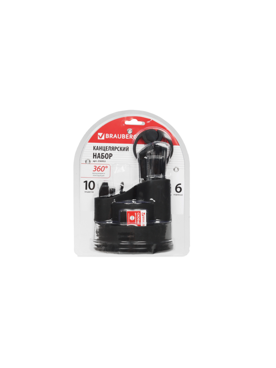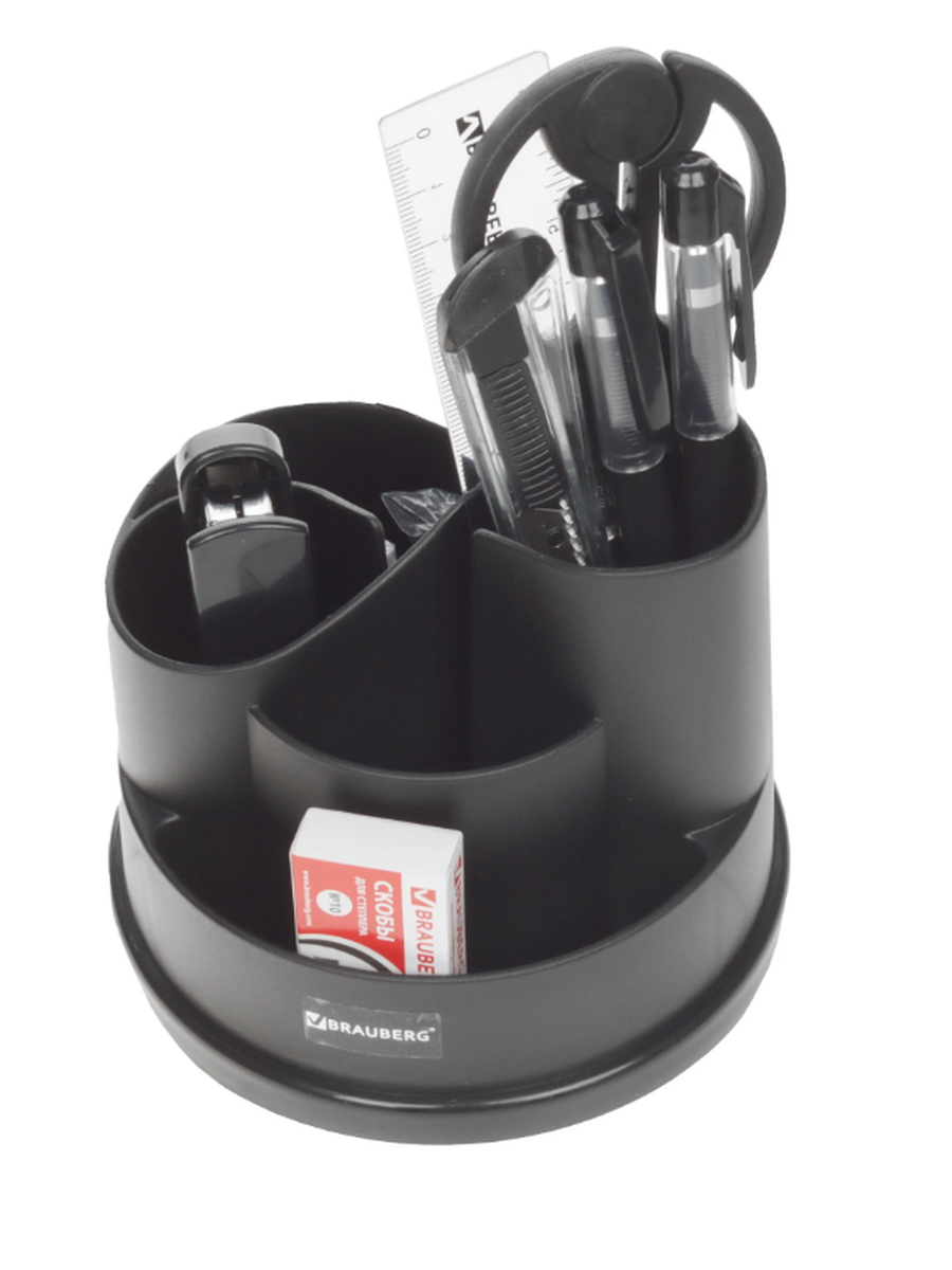 Для создания подставки из набора канцелярского Brauberg 236953 использовался прочный износоустойчивый пластик, который не разочарует преждевременным образованием повреждений. Вы по достоинству оцените возможность ее вращения на 360 градусов, что значительно упрощает доступ к необходимым атрибутам.