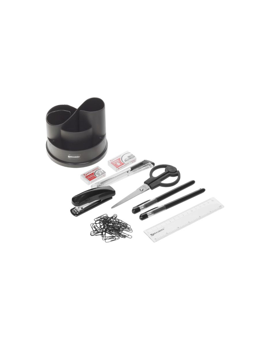 Набор канцелярский Brauberg 236953 станет неизменным ассистентом как дома, так и в офисе, ведь он обеспечивает грамотную организацию рабочего места. Внутри изделия вы найдете множество необходимых для ежедневного использования принадлежностей – ручки, линейку, степлер и многое другое.