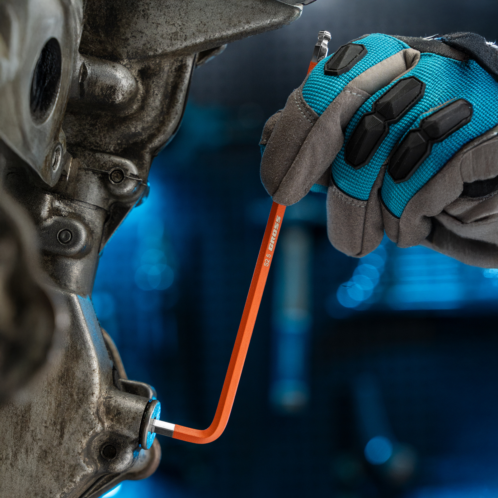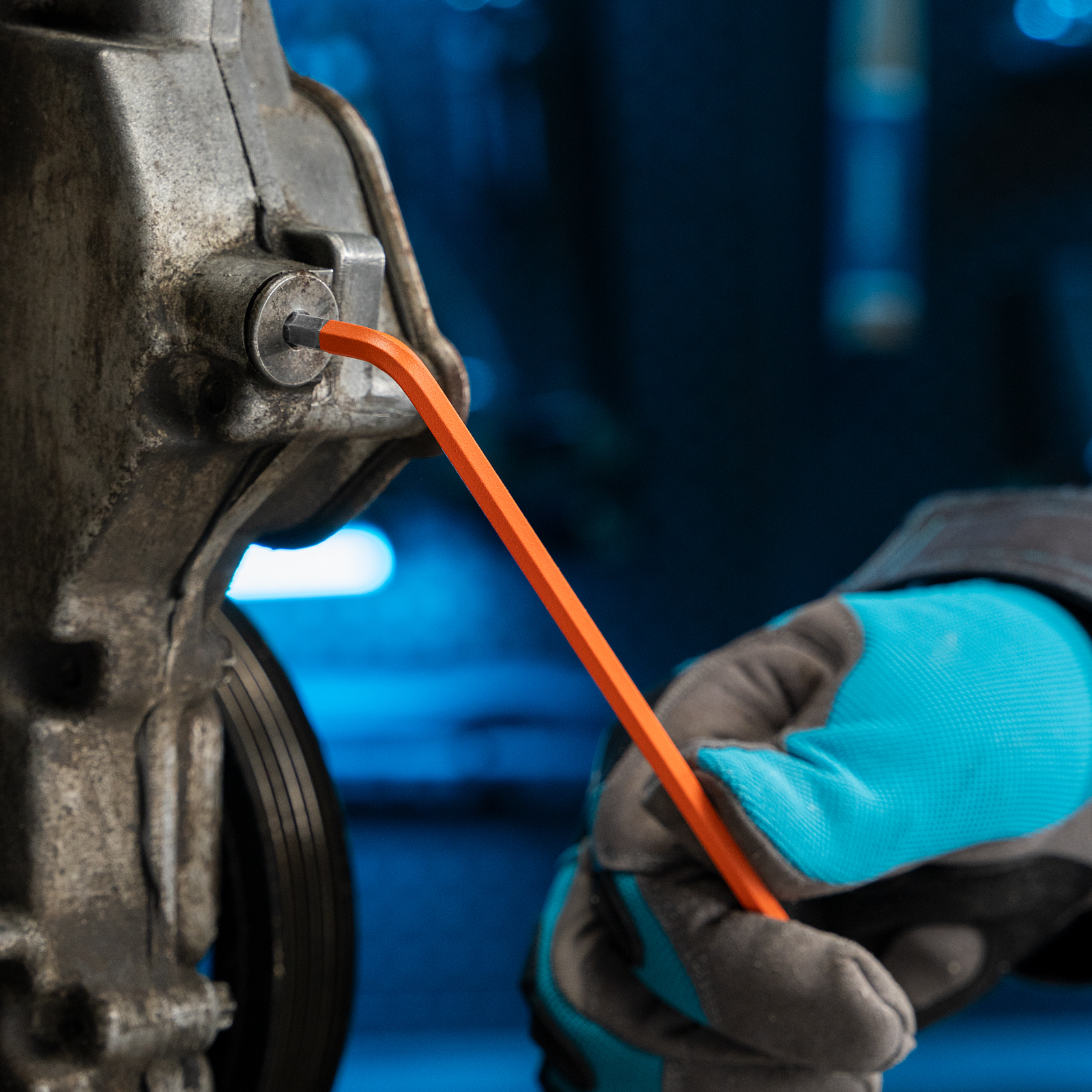 - Уверенный контакт с крепежом при работе под углом — в шаровидный наконечник каждого ключа встроен магнит.