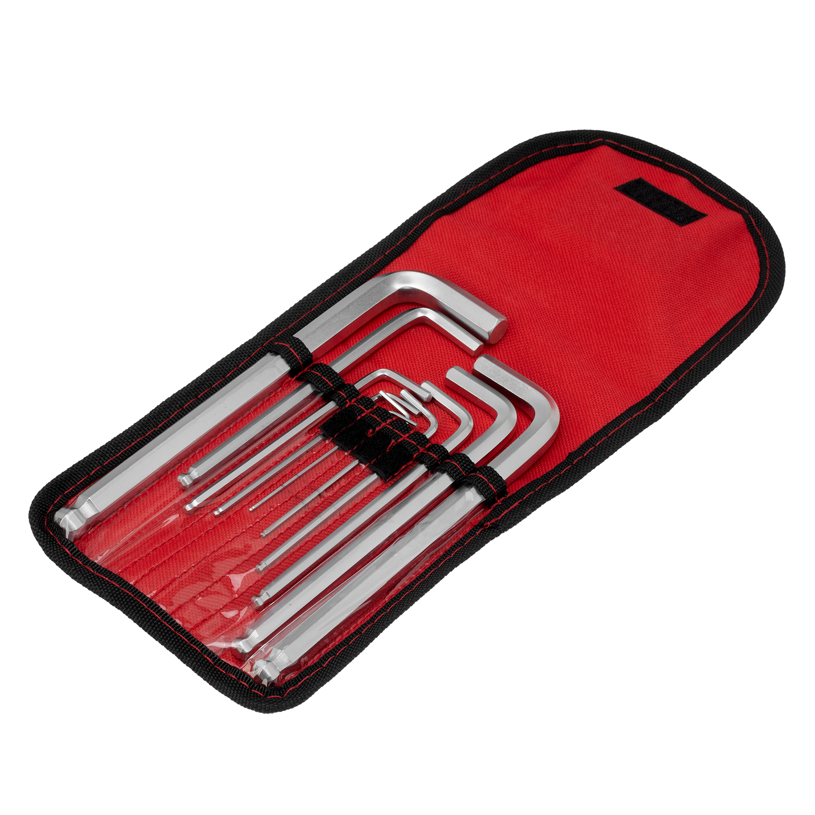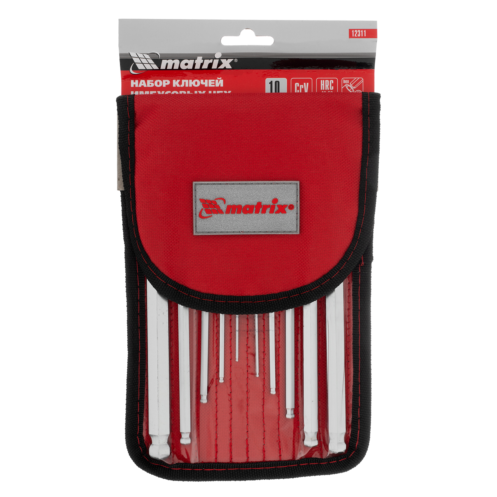Набор Matrix 12311 в чехле, включающий 10 удлиненных имбусовых сатинированных ключей HEX с шаром, из стали CrV, размером 1,5-12 мм, пригодится как начинающему мастеру, так и профессионалу. Ключи применяются при работе с крепежом, имеющим внутренний шестигранник. С их помощью можно собрать мебель или решить мелкие бытовые задачи. Шарообразные наконечники позволяют работать под углом, что удобно в условиях ограниченного пространства.