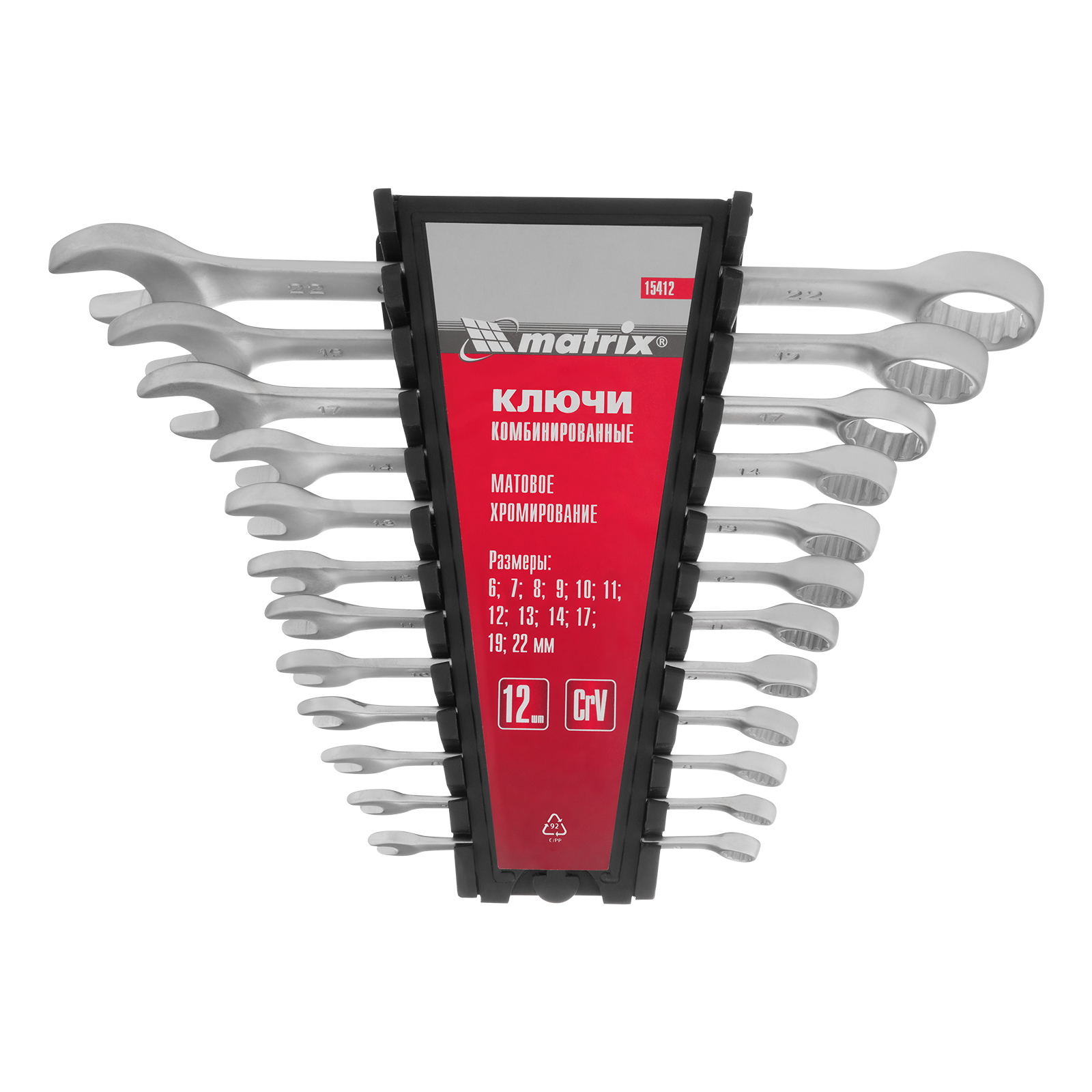 Набор Matrix 15412 включает 12 комбинированных ключей из стали CrV, размером 6-22 мм, с покрытием «матовый хром», которые пригодятся во время ремонтных работ дома или в гараже. С их помощью можно быстро монтировать и демонтировать крепежные элементы. В набор входят инструменты основных типоразмеров, позволяющие эффективно решать поставленные задачи.