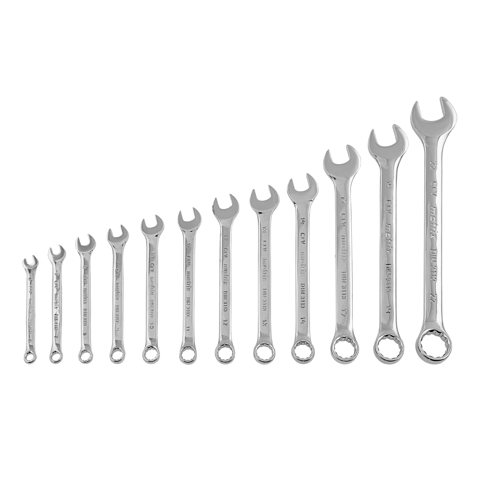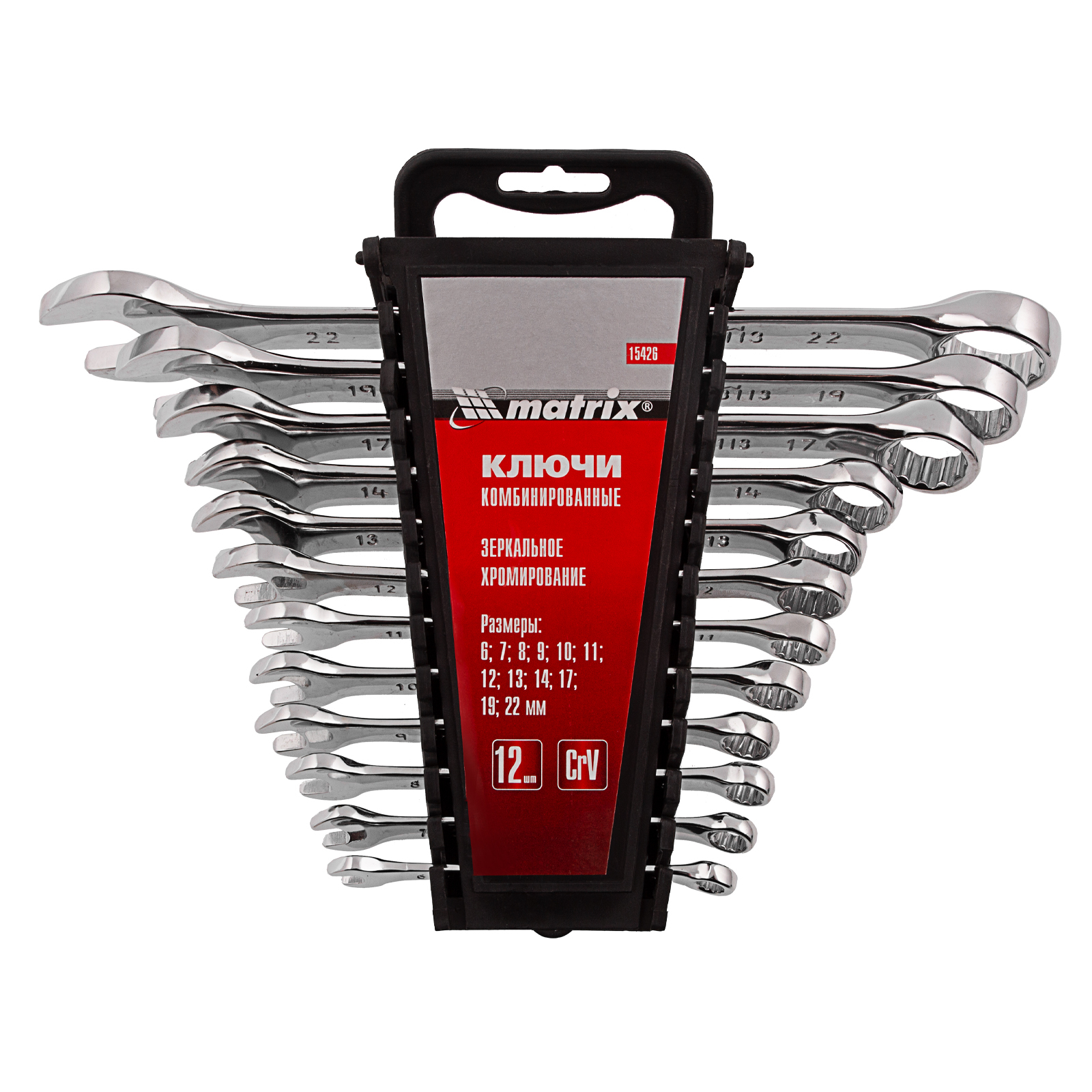 Набор Matrix 15426 включает 12 комбинированных ключей из стали CrV, размером 6-22 мм, с покрытием «полированный хром», которые пригодятся во время ремонтных работ дома или в гараже. С их помощью можно быстро монтировать и демонтировать крепежные элементы. В набор входят инструменты основных типоразмеров, позволяющие эффективно решать поставленные задачи.