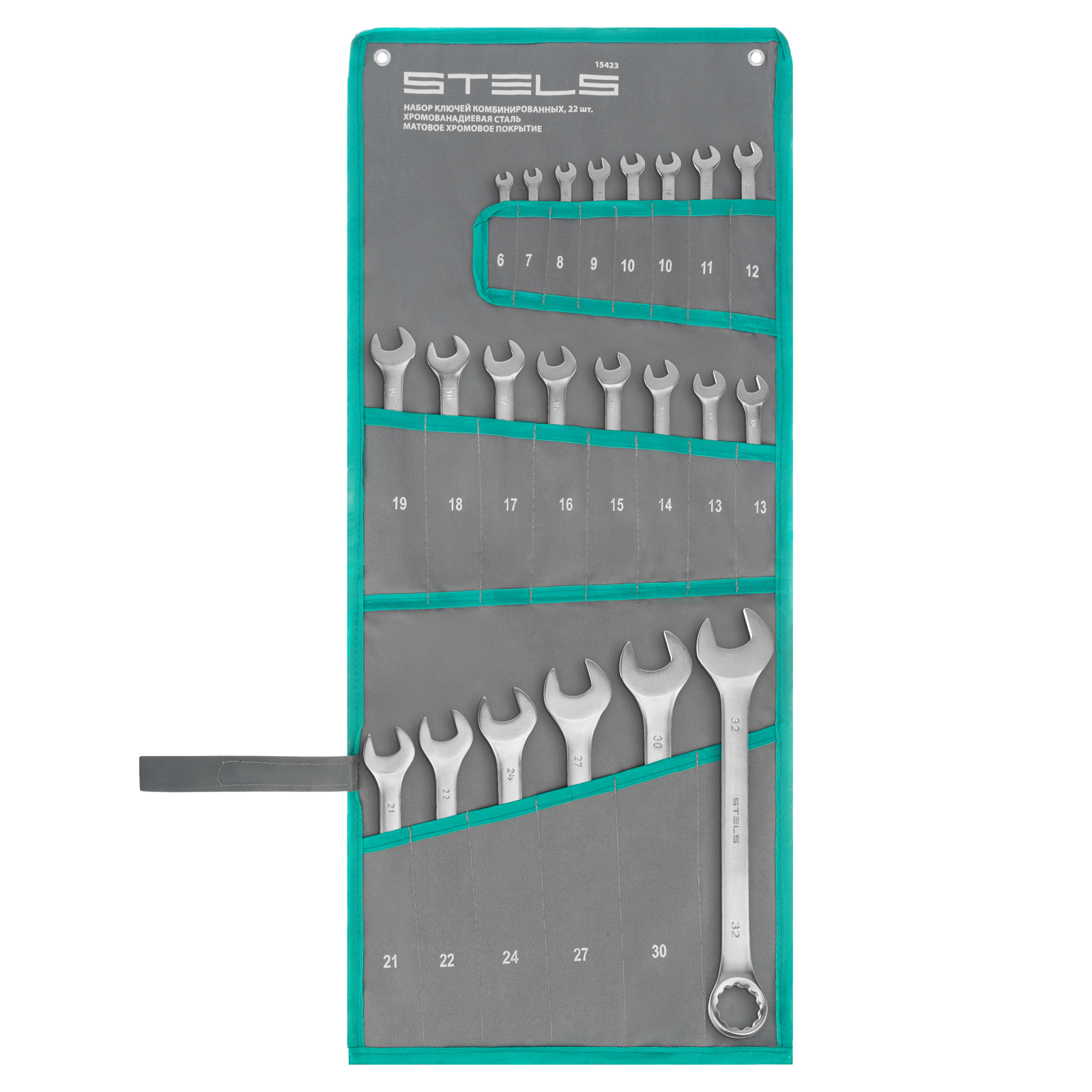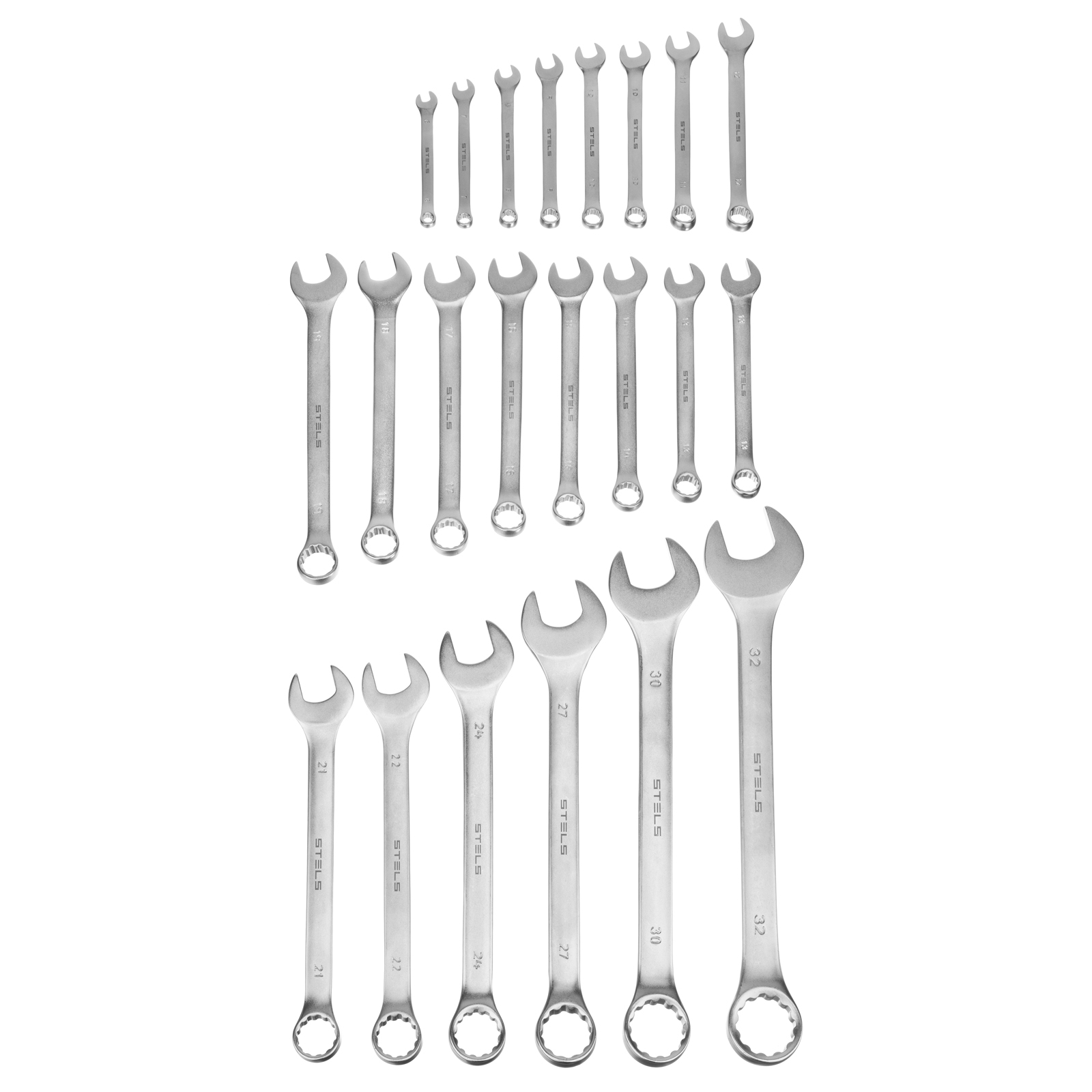 Набор комбинированных ключей Stels 15423 включает в себя 22 инструмента размером 6-32 мм, выполненных из стали CrV с покрытием «матовый хром». Предназначен для монтажа и демонтажа гаечных и болтовых соединений. В наборе представлена широкая размерная линейка ключей, что позволяет решать разнообразные задачи. Инструменты пригодятся дома, в мастерской и гараже.