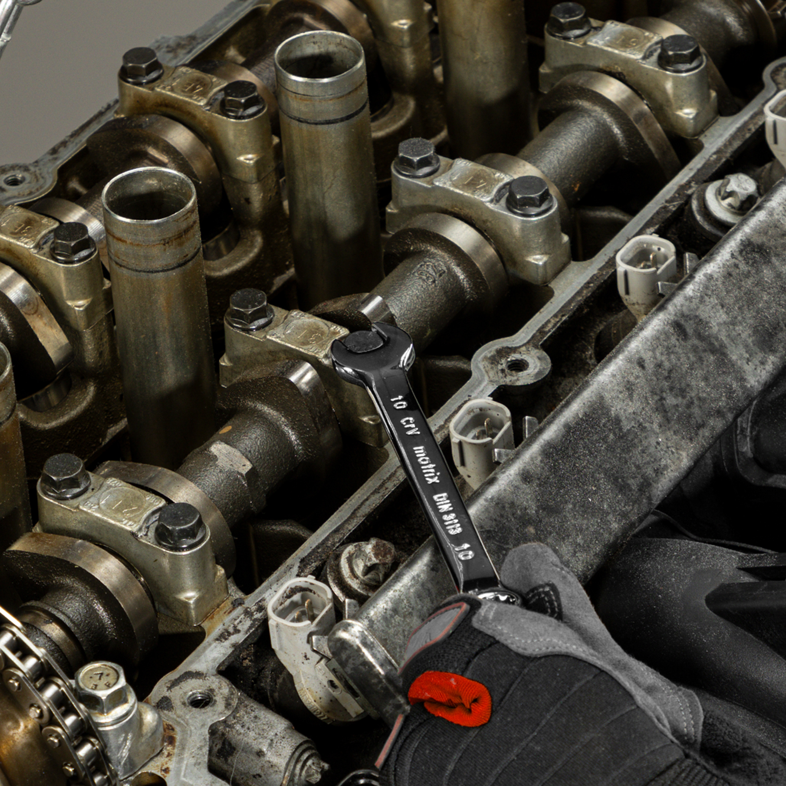 - Аккуратная работа — накидные части с 12-гранным профилем охватывают всю поверхность крепежа, уменьшая риск деформации его граней.