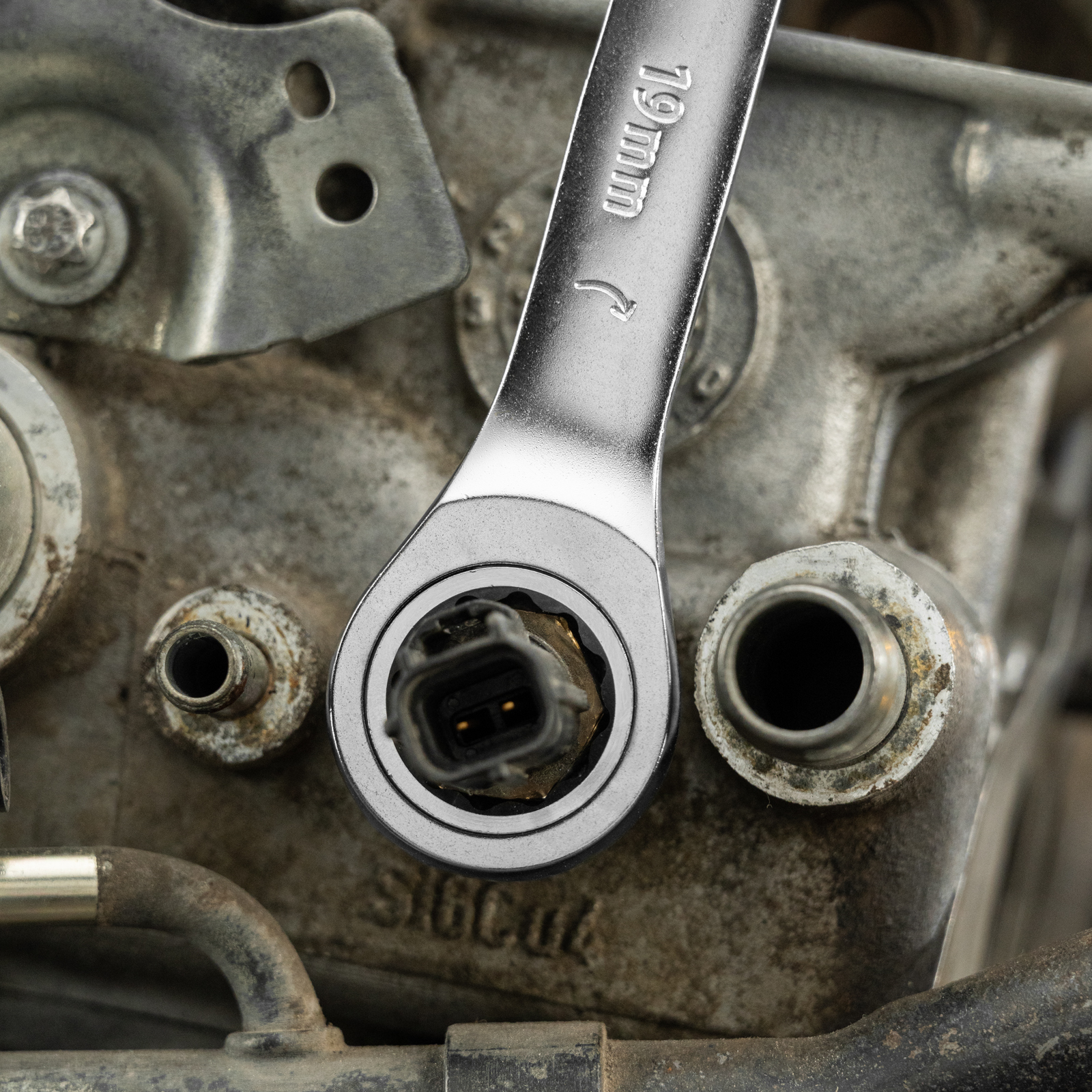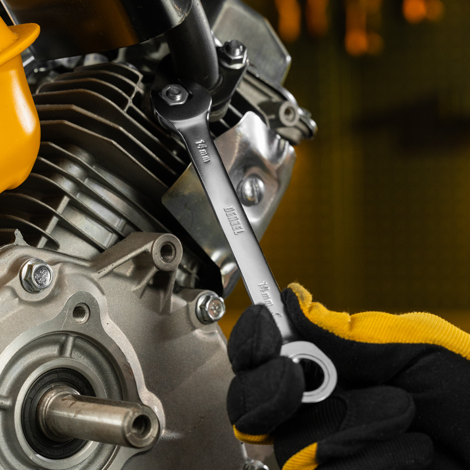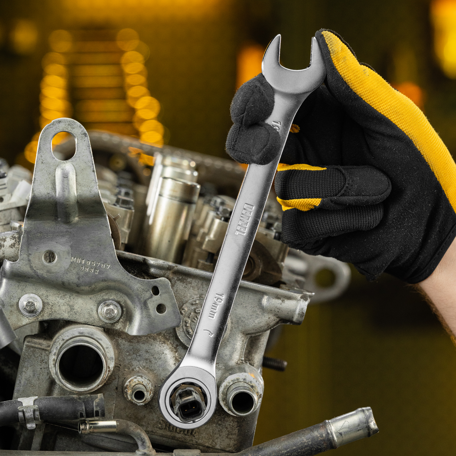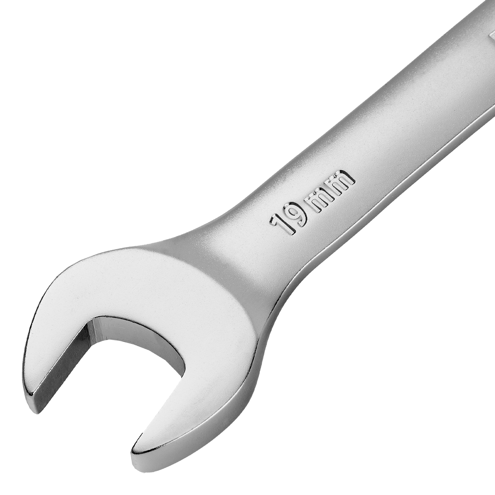 - Аккуратная работа — 12-гранная накидная часть увеличивает площадь соприкосновения с головкой крепежа и снижает риск ее деформации.