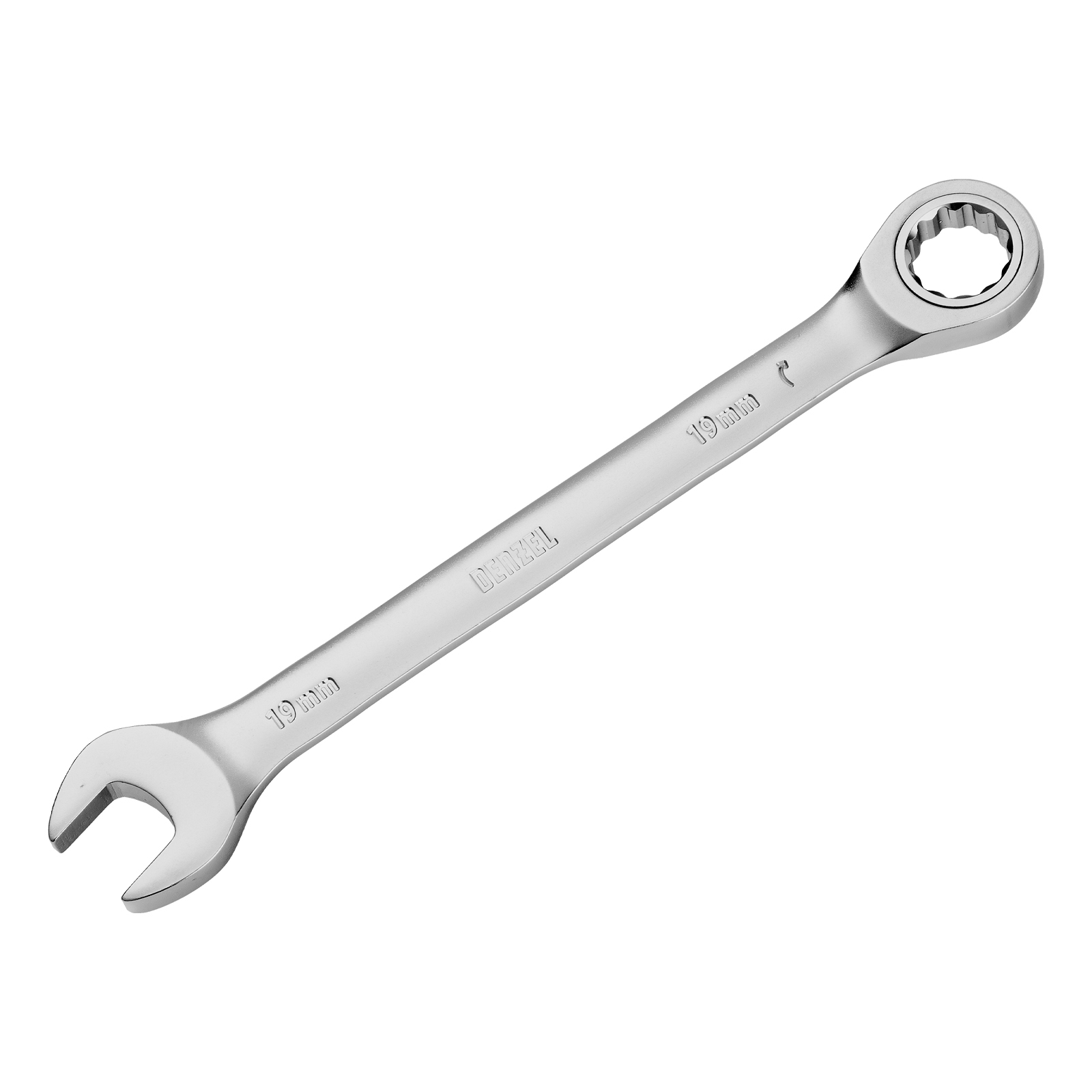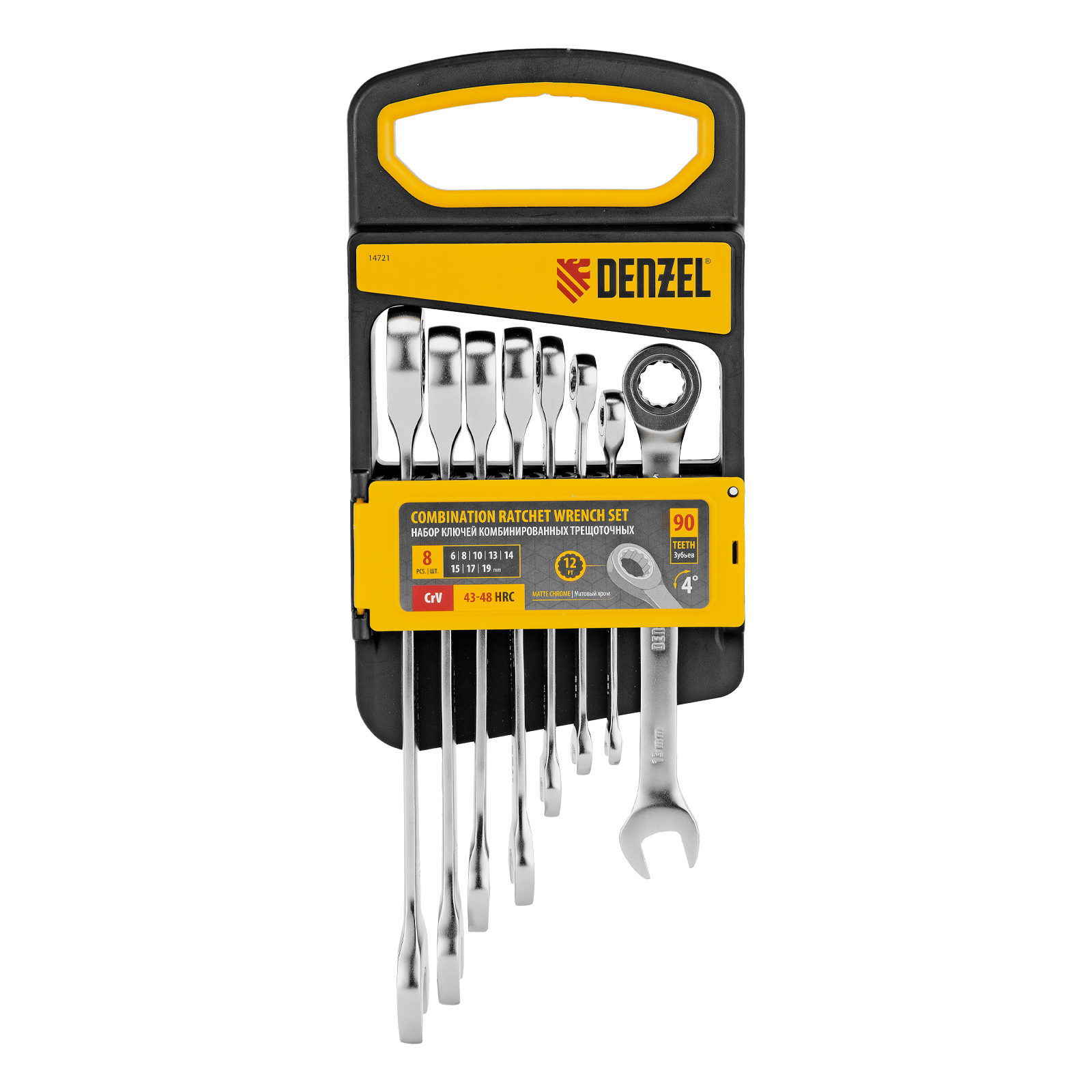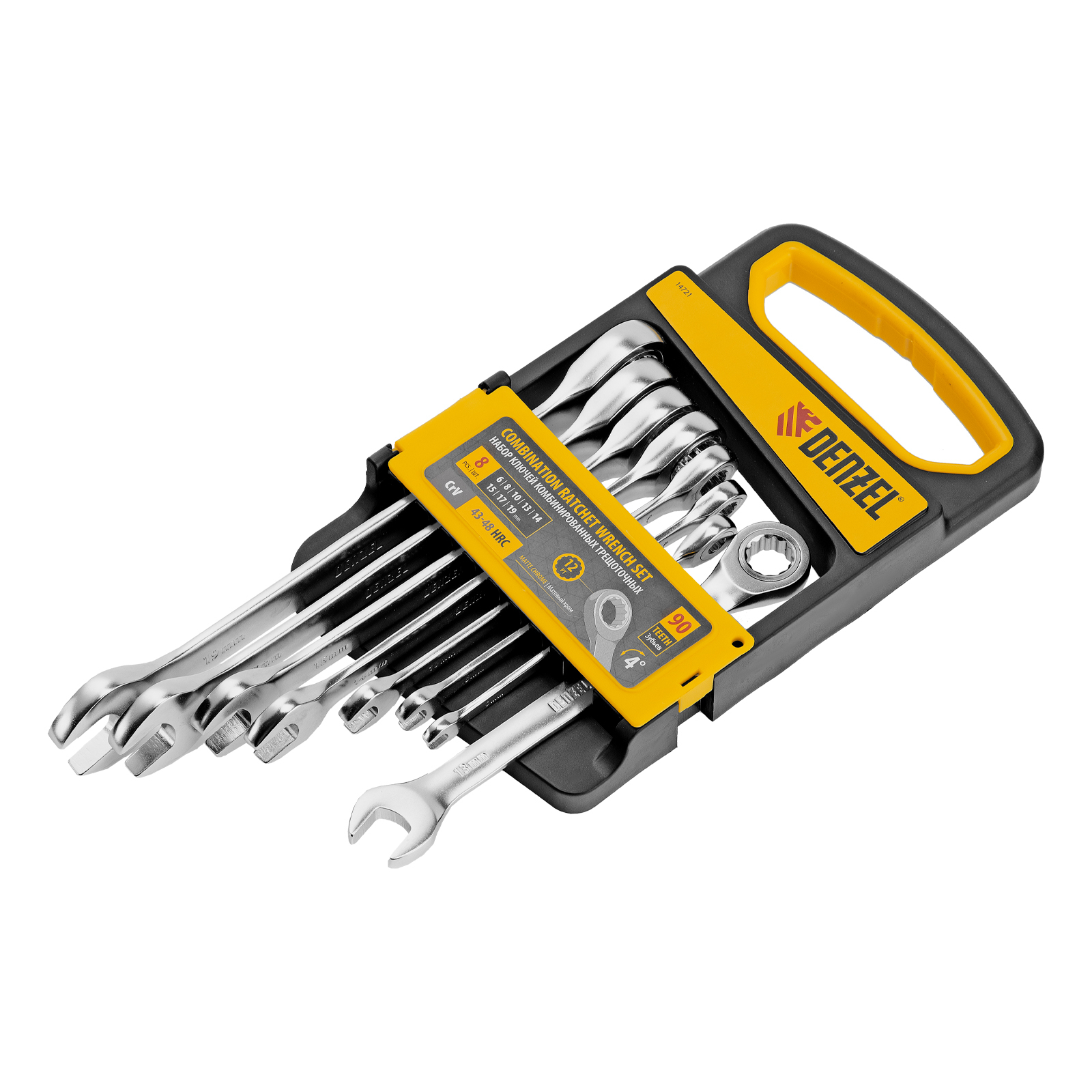 Набор комбинированных трещоточных ключей Denzel 14721 состоит из 8 инструментов из стали CrV, размером 6-19 мм, с покрытием «матовый хром». Используется для проведения монтажных и демонтажных работ с резьбовыми соединениями, в том числе в труднодоступных местах. У каждого ключа 2 рабочих профиля, что расширяет возможности использования набора. Инструменты пригодятся дома и в гараже.