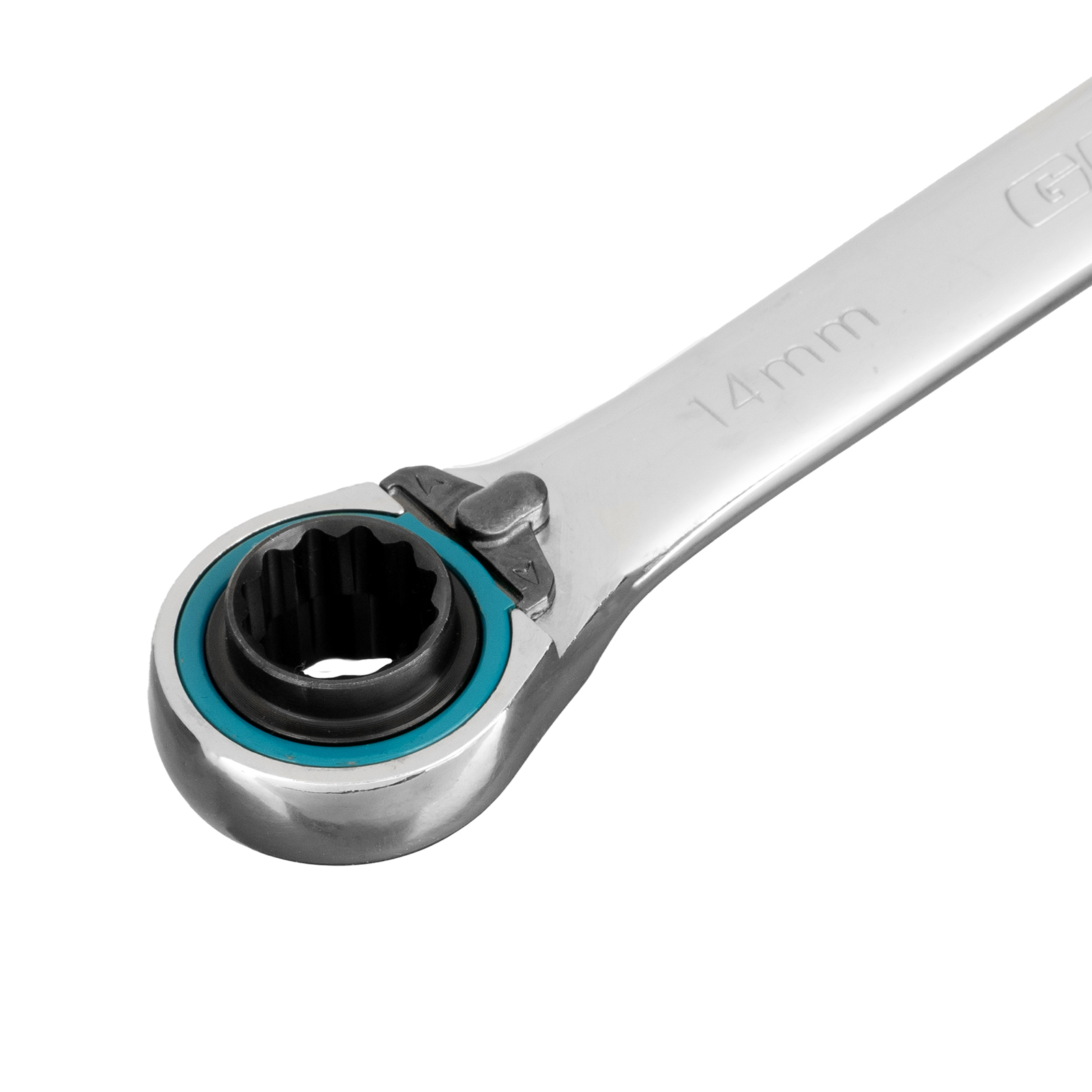 Набор многоразмерных накидных реверсивных ключей с трещоткой Gross 14893 включает 2 инструмента из стали CrV, предназначенных для монтажа и демонтажа крепежа размером 8-19 мм. Каждый из них может заменить сразу 4 ключа, т.к. имеет две накидные рабочие головки с 4 захватами — 8 х 10 мм и 12 х 13 мм у первого ключа и 14 х 17 мм и 18 х 19 мм у второго. 12-гранный профиль позволяет надежно захватывать крепеж. Наличие реверса упрощает работу с резьбовыми соединениями. Набор подходит как для профессионального, так и для самостоятельного ремонта автомобилей.