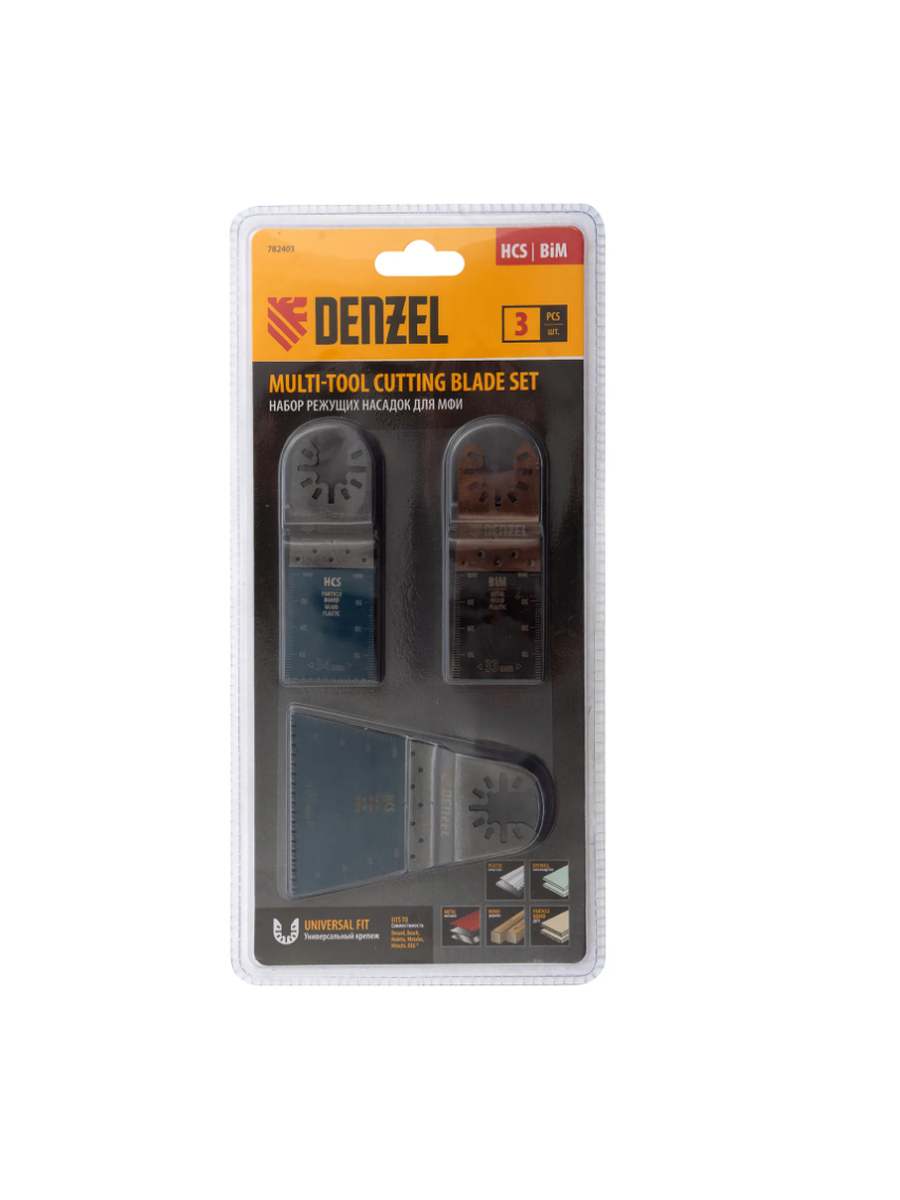 Набор Denzel 782403 состоит из 3 насадок по дереву, металлу и пластику, которые устанавливаются на МФИ. Благодаря ему можно осуществить широкий спектр работ: разрезать трубы, профильные листы, выполнить рез материалов, осуществить выборку пазов и др.