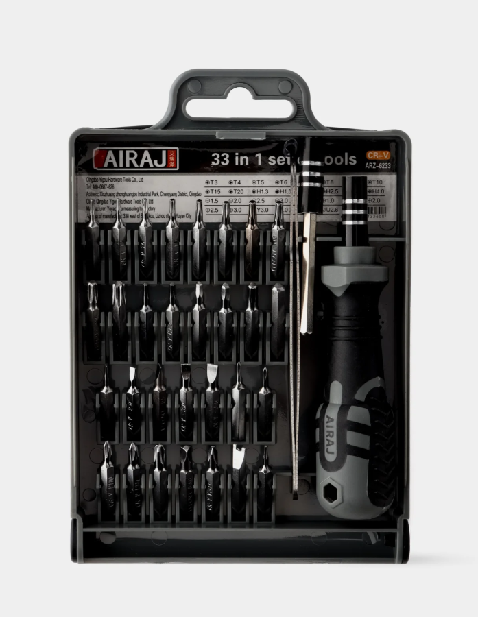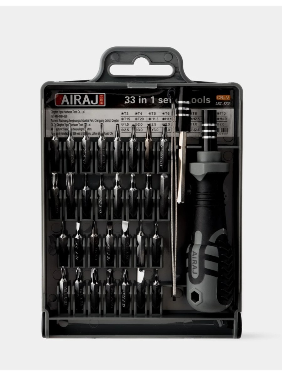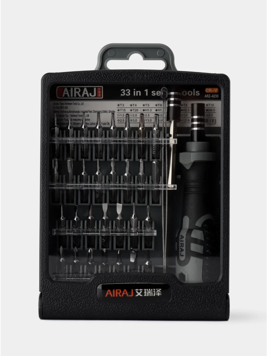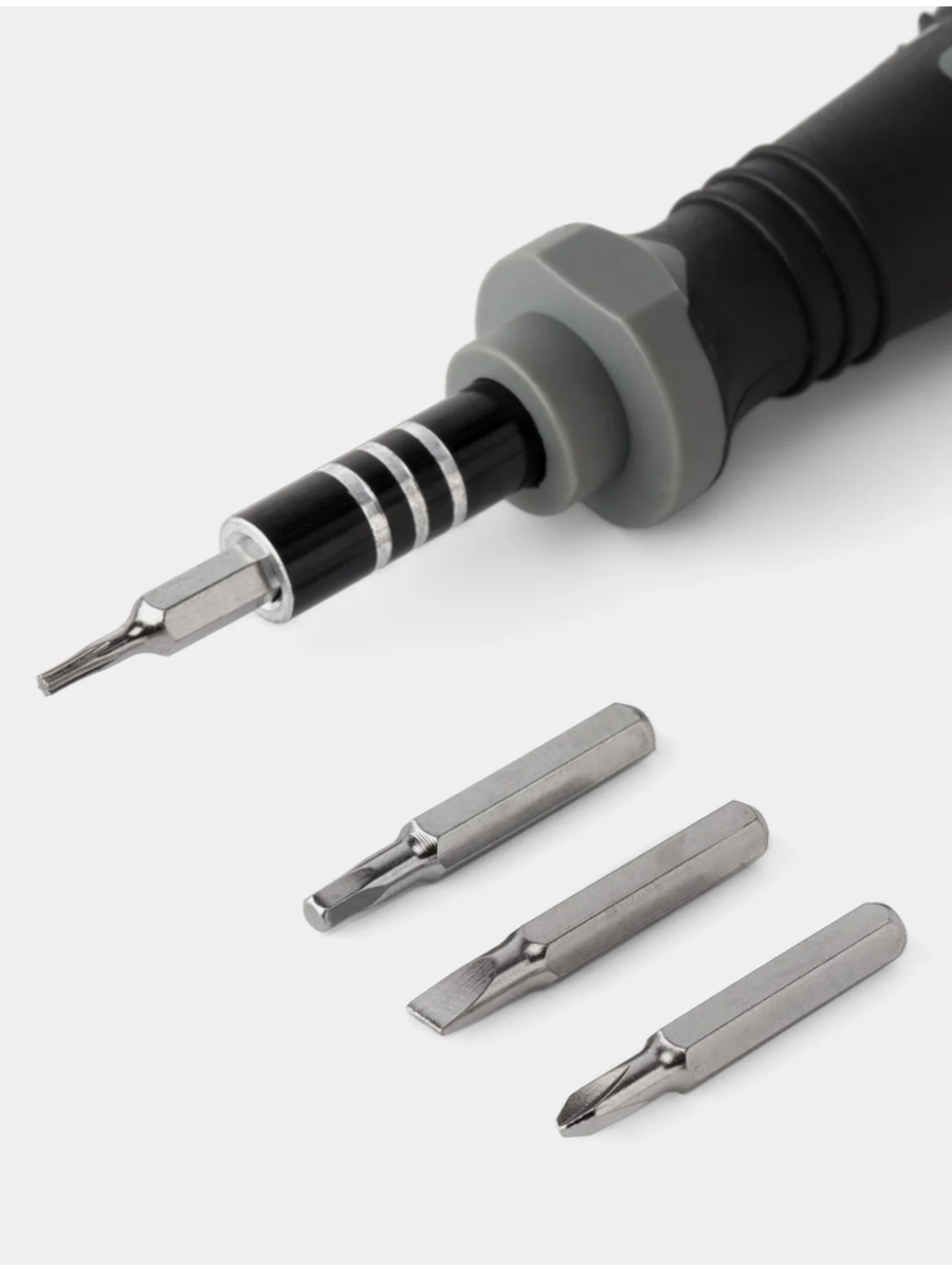 · Полная комплектация: 33 насадки самых популярных и редких типов и размеров (Slotted, Phillips, Pozidriv, Torx, Hex, Tri-Wing, Spanner и другие). Вам больше не придется откладывать ремонт из-за отсутствия нужного бита.