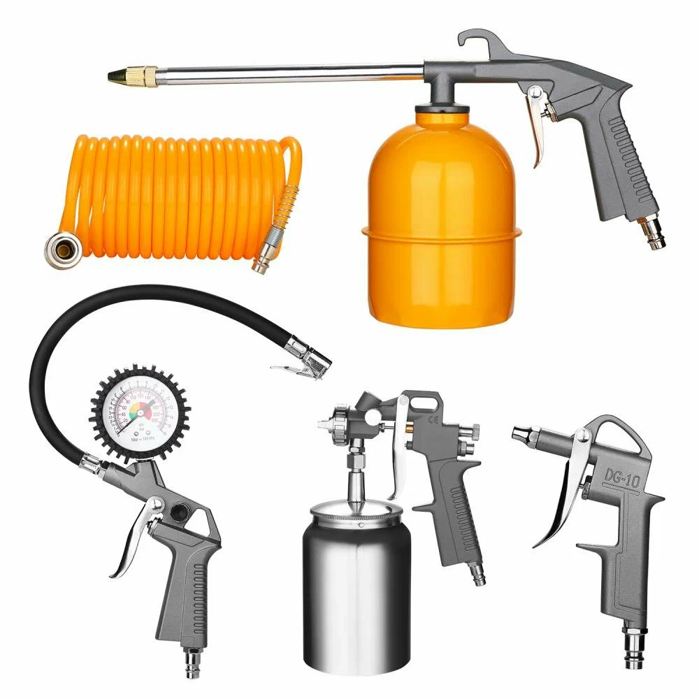 Набор пневмоинструмента DEKO DKSG05-1 предназначен для лакокрасочных работ, продувки загрязненных поверхностей сжатым воздухом, подкачки шин, нагнетания технических растворов и вязких жидкостей. Корпус инструментов изготовлен из металла, что позволяет добиться высокой надежности и длительного срока службы. Также стоит отметить большой рабочий ресурс и возможность длительной работы без остановки.