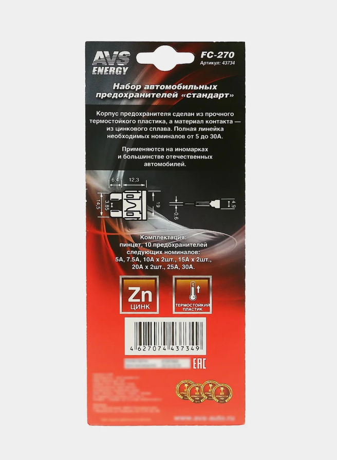 Технические характеристики набора предохранителей AVS FC-270 43734