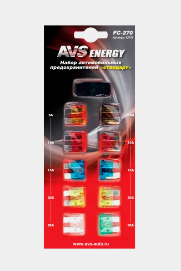 Автомобильные флажковые предохранители "AVS" помогут защитить электрические цепи автомобиля от короткого замыкания и позволят без проблем заменить сгоревший предохранитель в автомобиле. Корпус предохранителя выполнен из прозрачного пластика, а элемент - из цинкового сплава. Набор автомобильных предохранителей "Стандарт" применяется в большинстве отечественных автомобилей.