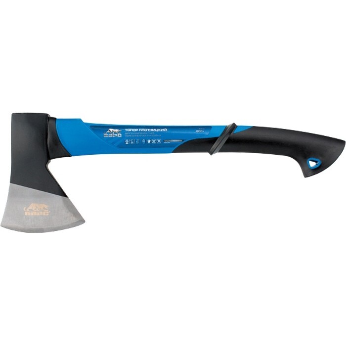 - Фибергласовое топорище — не разрушается под воздействием окружающей среды, а также гасит колебания от ударов.