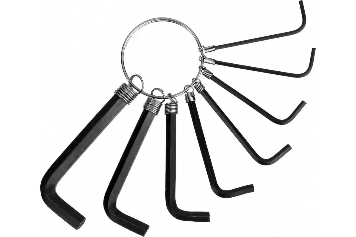 Набор состоит из 8 ключей с размерным рядом: 1.5; 2; 2.5; 3; 3.5; 4; 5; 6.