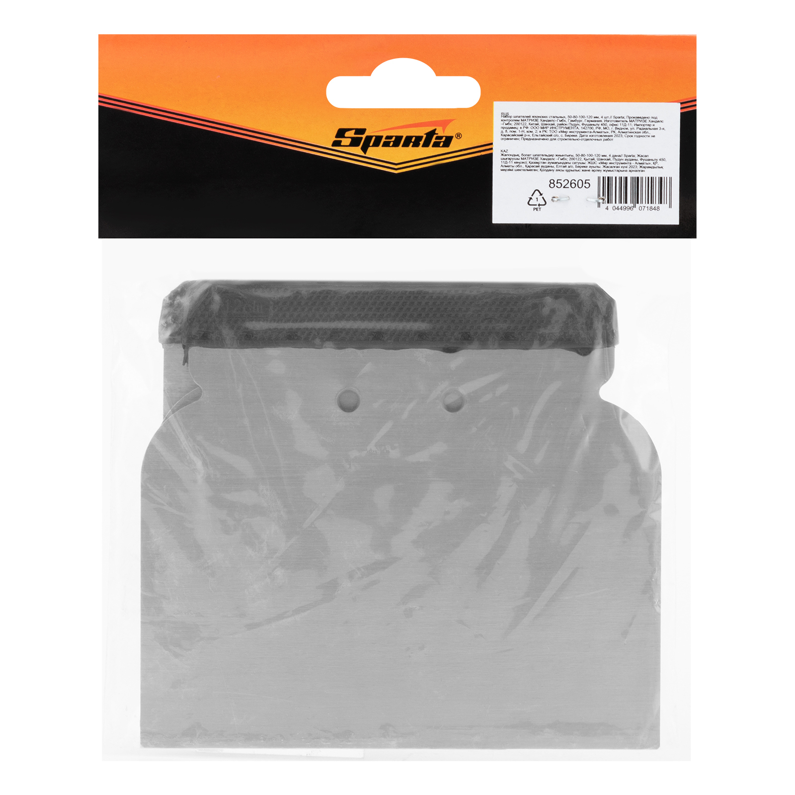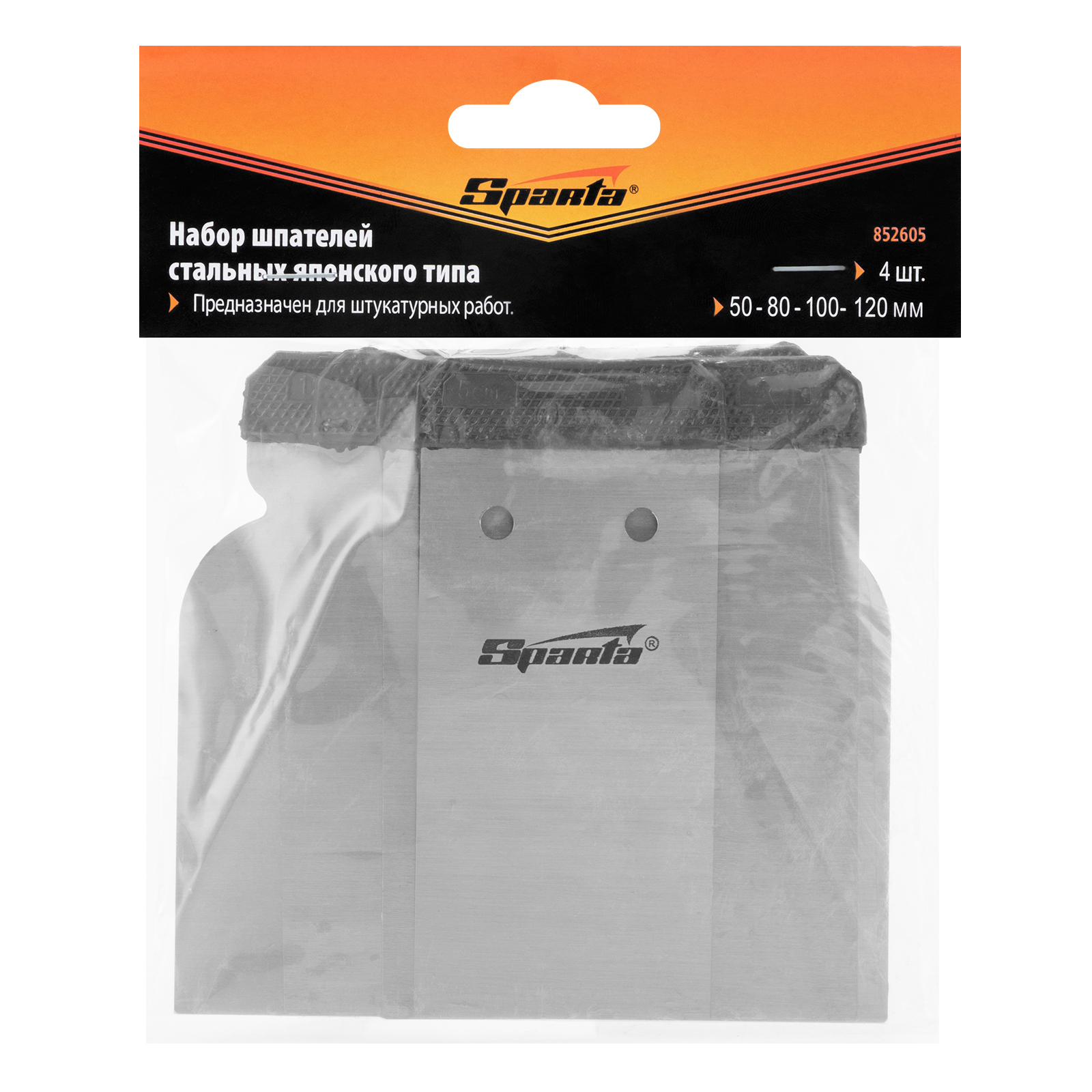 Набор Sparta 852605 включает 4 стальных шпателя японского типа размером 50, 80, 100 и 120 мм. Он используется для нанесения выравнивающих и защитных покрытий на подготовленные поверхности. Специальные держатели обеспечивают отличный контроль нанесения штукатурки и других материалов.