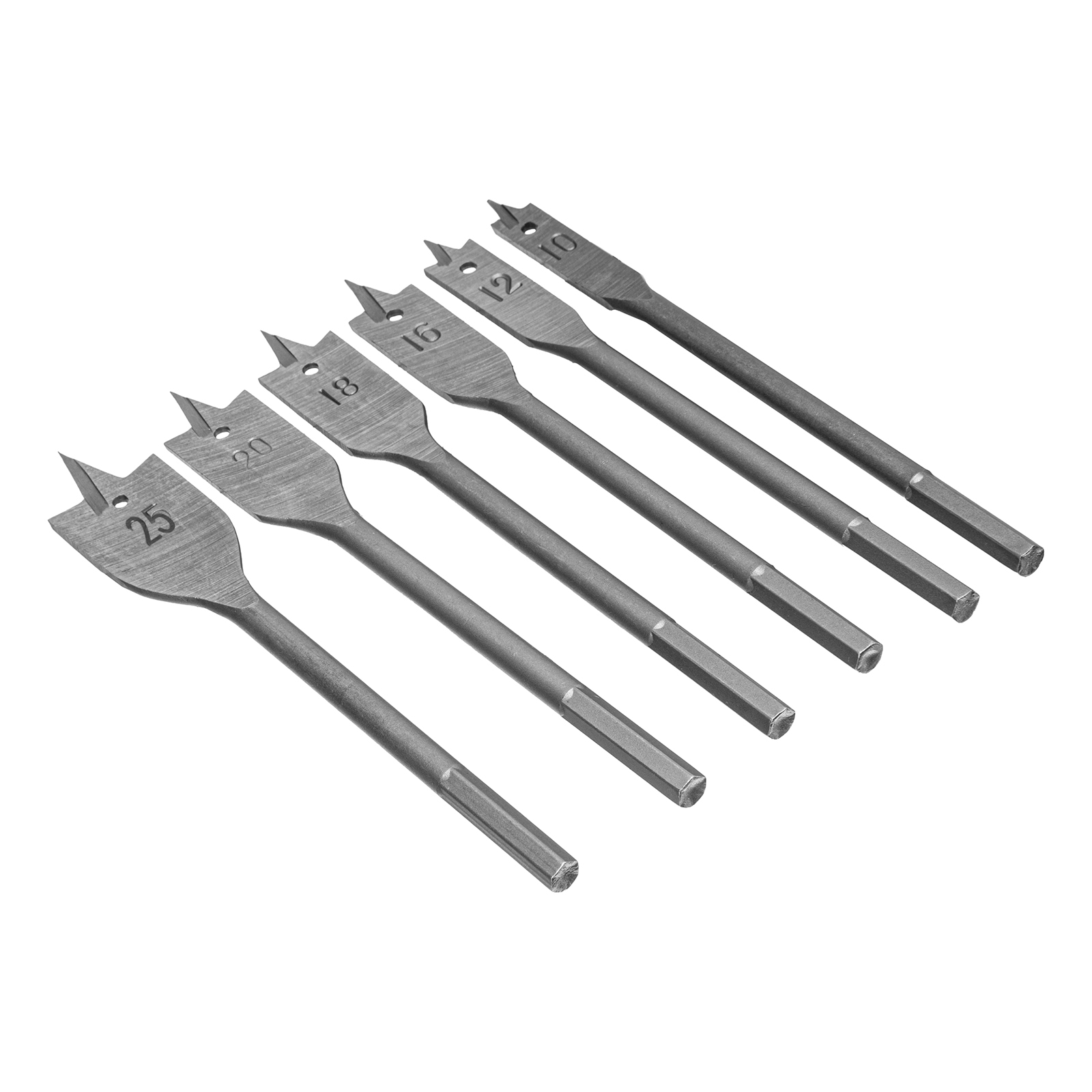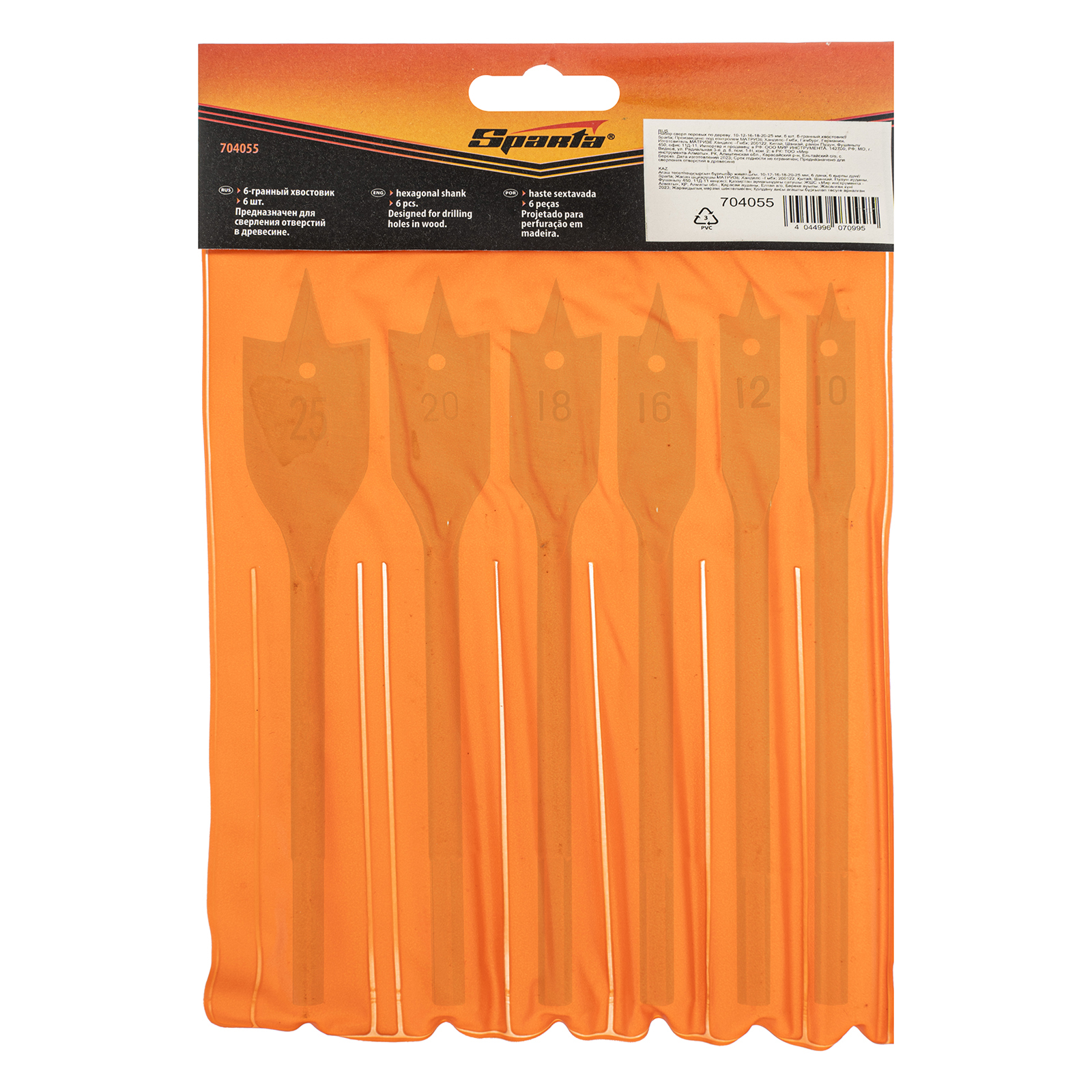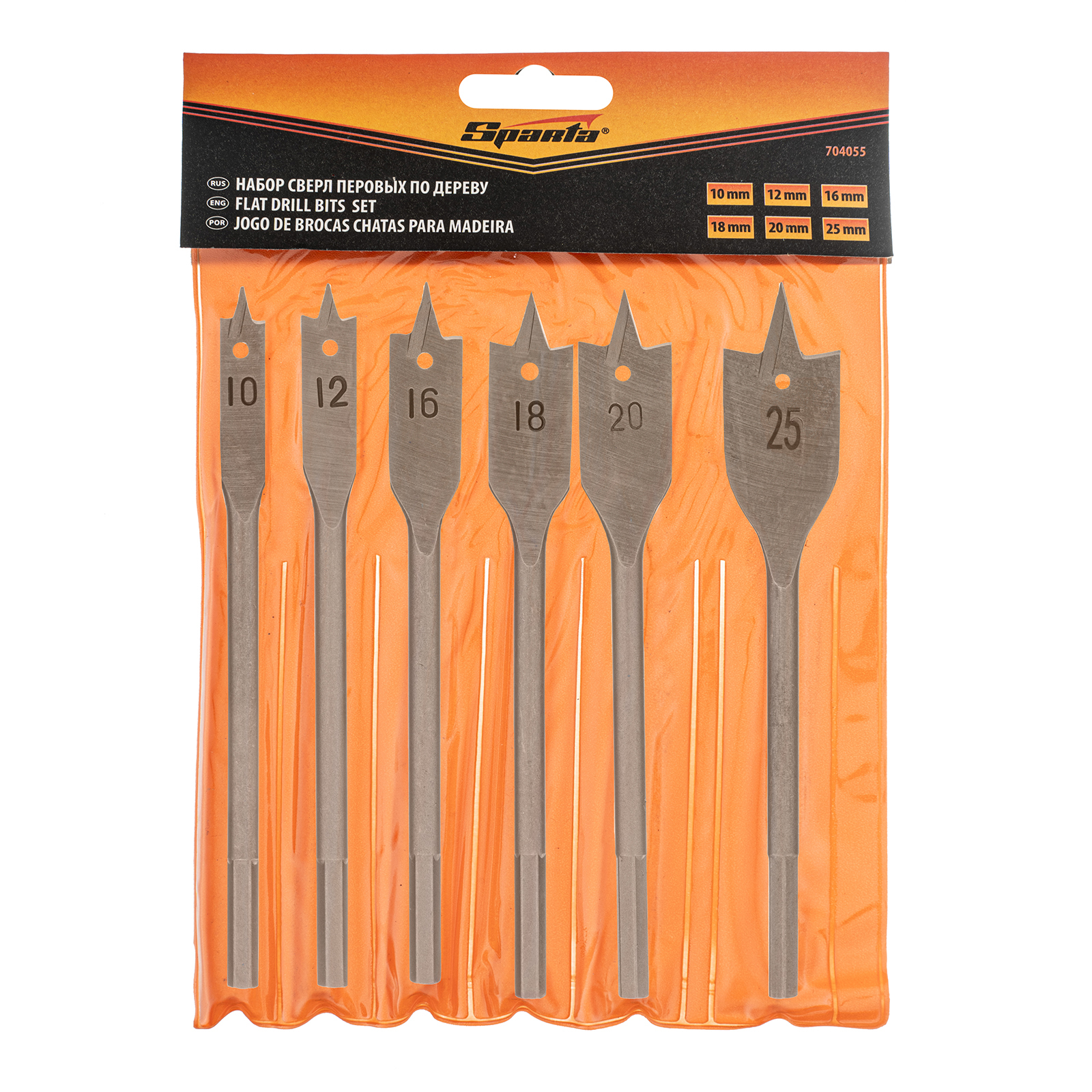 Набор Sparta 704055 состоит из 6 перовых сверл по дереву размером 10-12-16-18-20-25 мм, с 6-гранным хвостовиком, используемых для получения глубоких сквозных отверстий в древесине. Ими также можно сверлить глухие отверстия, если нет строгих требований к форме их дна. Точное позиционирование сверл обеспечивают центральные шипы. Набор включает инструменты самых распространенных размеров и пригодится для сборки деревянных конструкций.