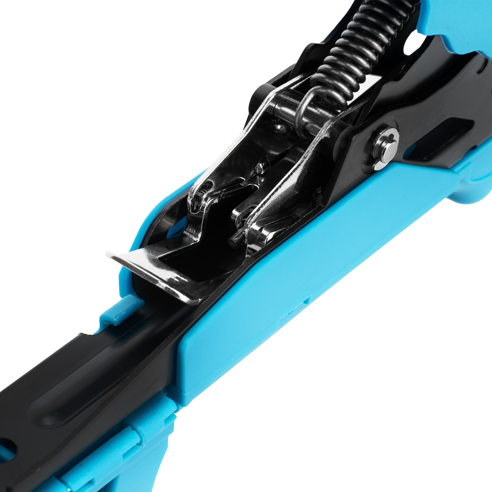 - Эффективность — ударный механизм обеспечивает мгновенное скрепление ленты при помощи скобы.