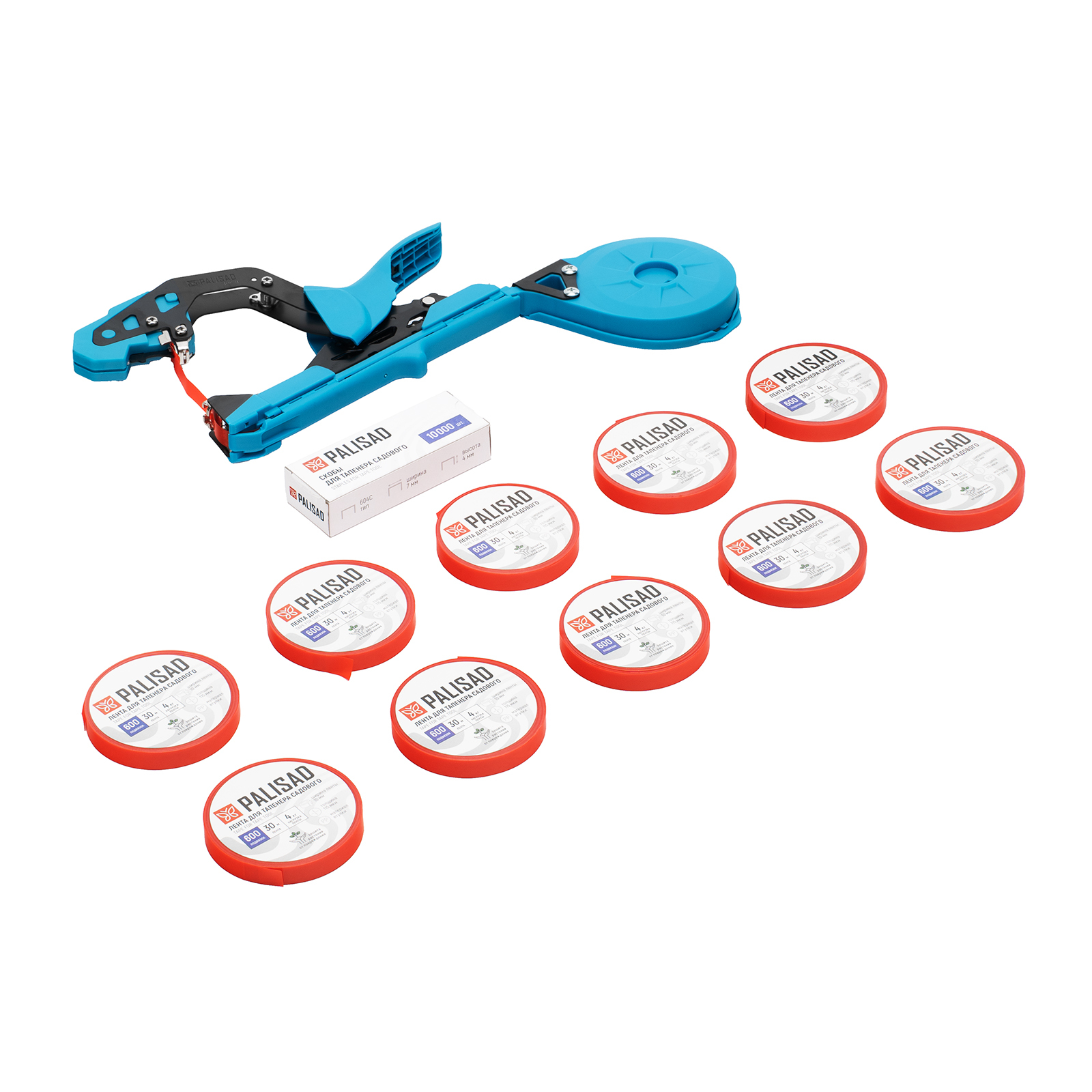 Набор Palisad 64534 включает в себя все необходимое для подвязки растений: садовый тапенер, 10000 скоб и 11 лент длиной 30 м. Тапенер позволяет одним движением прикрепить стебель растения к опоре при помощи ленты, зафиксированной скобой, — такое решение существенно экономит время и силы пользователя. Набор будет полезен для ухода за огородными и садовыми культурами: огурцами, перцем, горохом, виноградом, цветами и т.д.