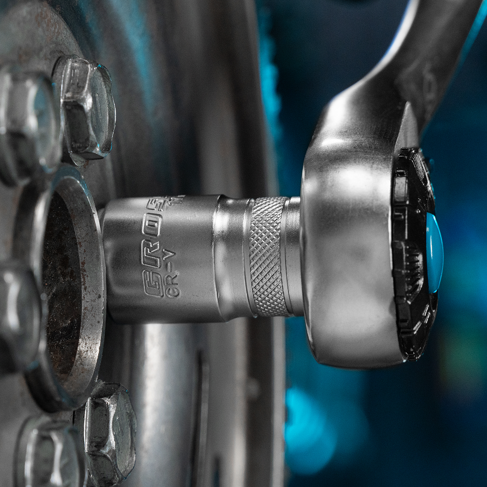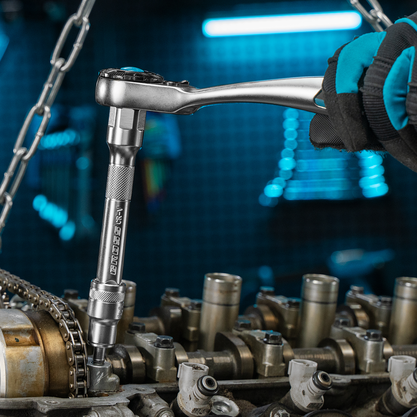 - Удобная работа в труднодоступных местах — цельнокованая трещотка со 120 зубьями позволяет вращать крепеж максимально плавно и мягко.